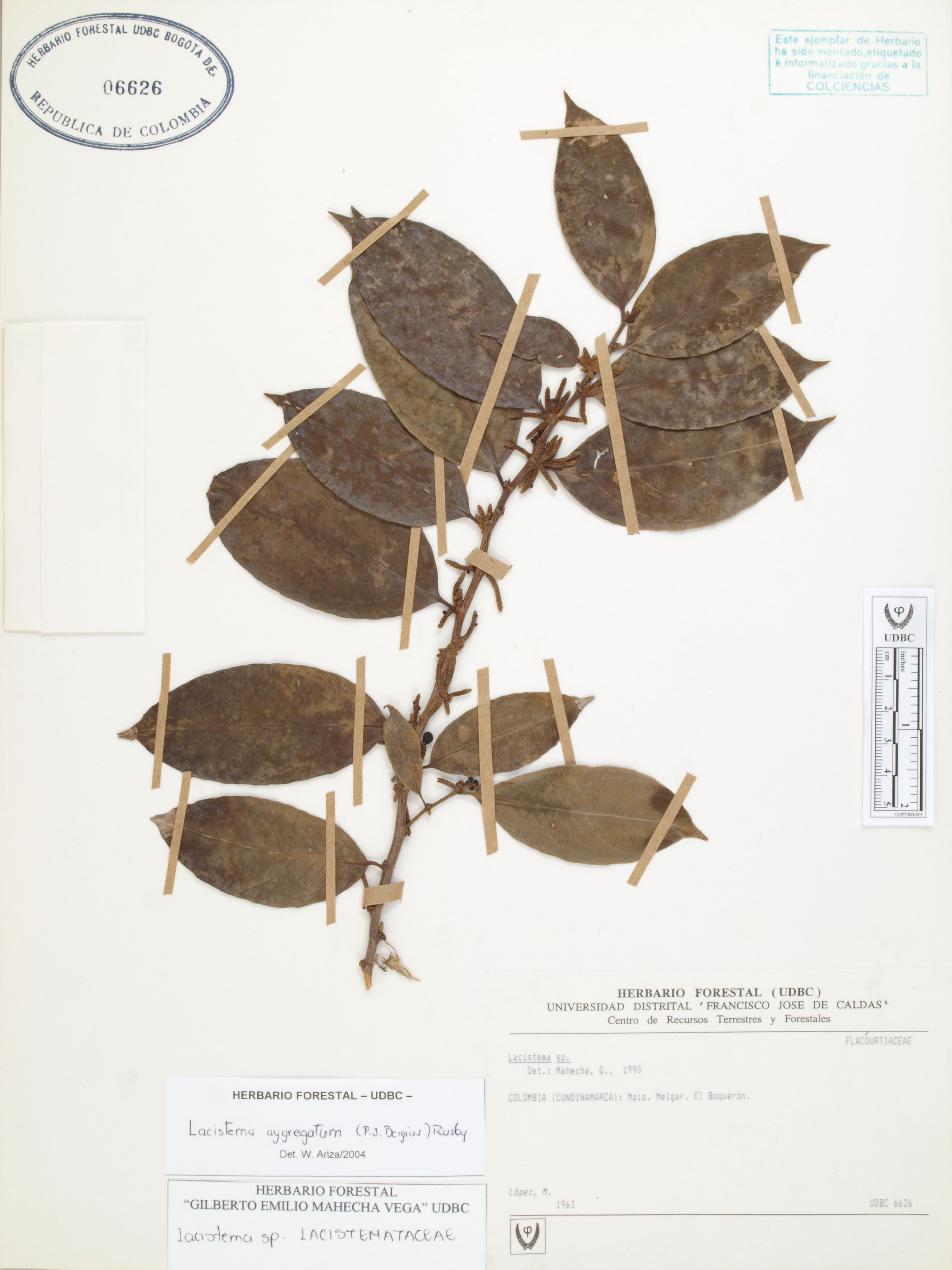 Fotografía del ejemplar López, M., determinado como Lacistema aggregatum en el año 2004