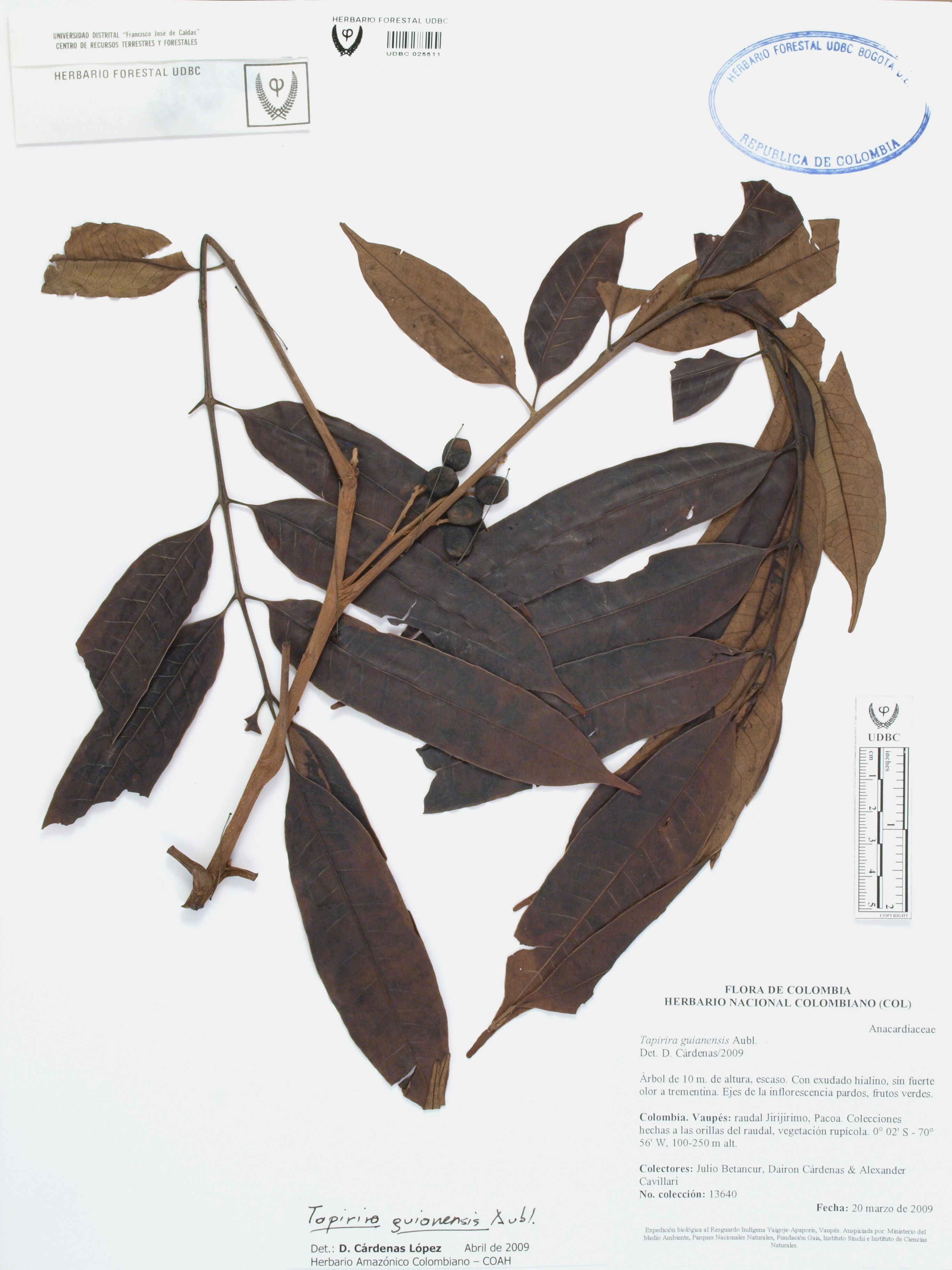 | dc.description | Fotografía del ejemplar Betancur, J. 13640, determinado como Tapirira guianensis en el año 2009 | |
