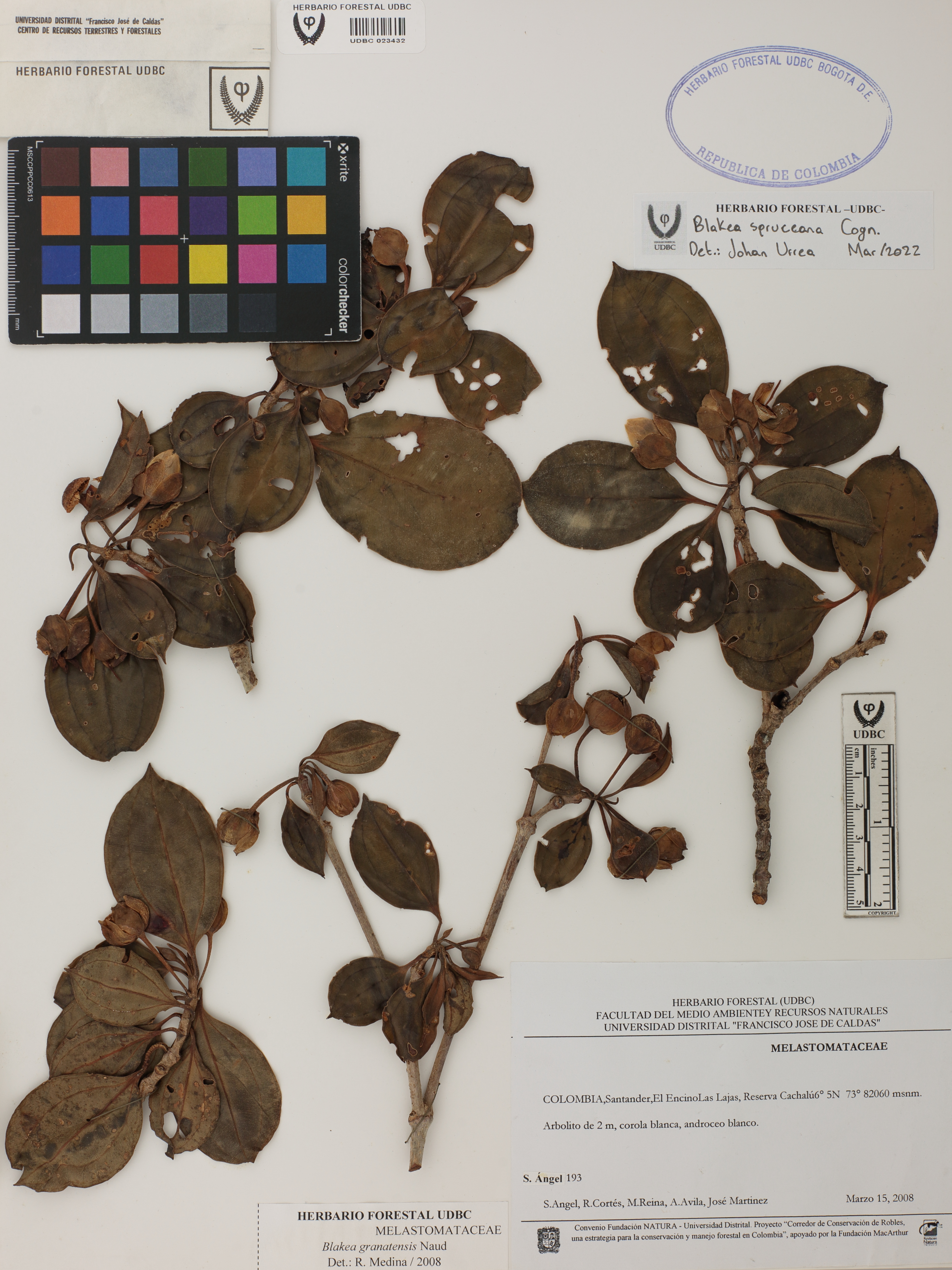 Fotografía del ejemplar Ángel, S. 193, determinado como Blakea spruceana en el año 2022