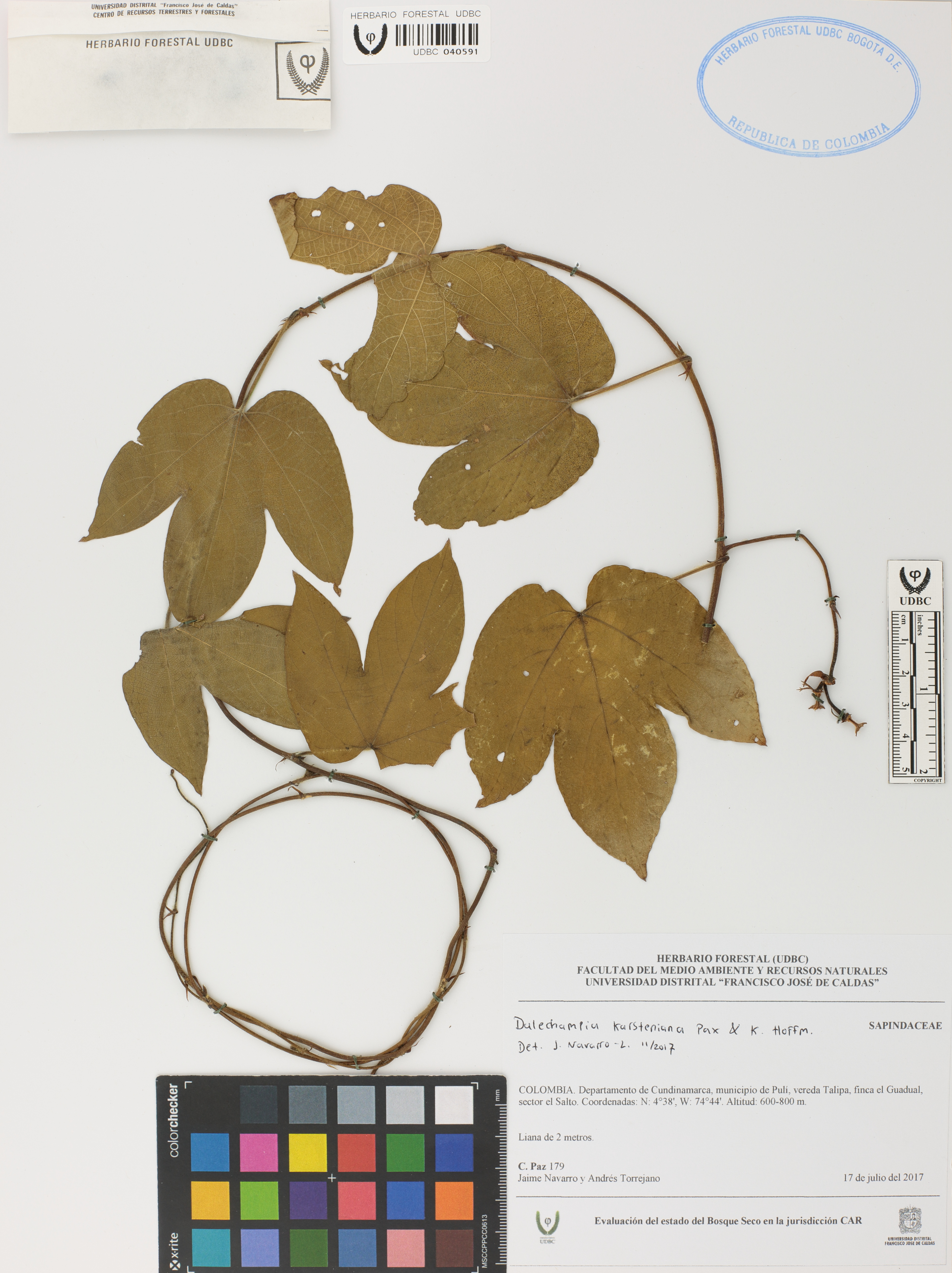 Fotografía del ejemplar Paz, C. 179, determinado como Dalechampia karsteniana en el año 2017