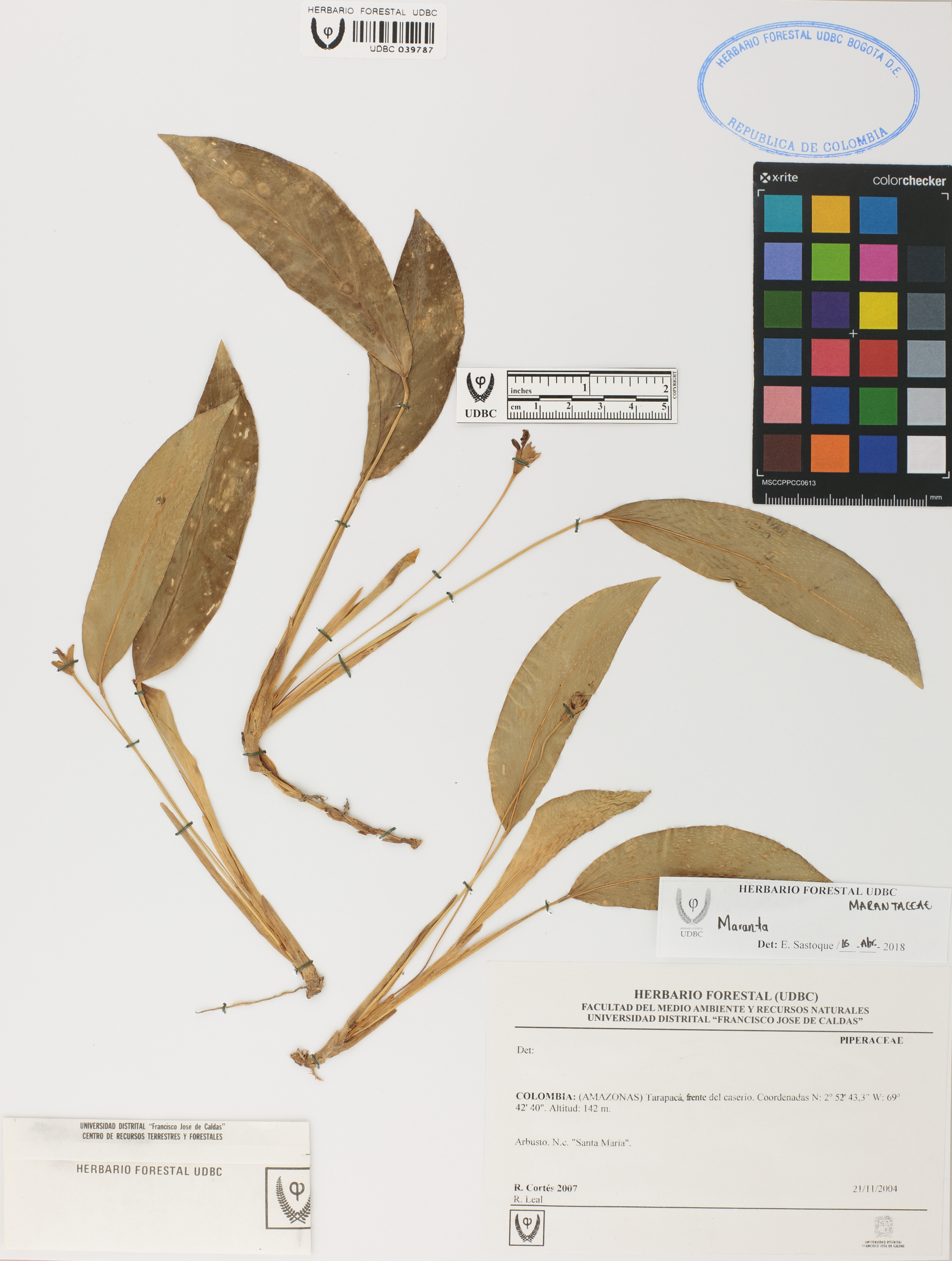 Fotografía del ejemplar Cortés, R. 2007, determinado como Maranta sp. en el año 2018