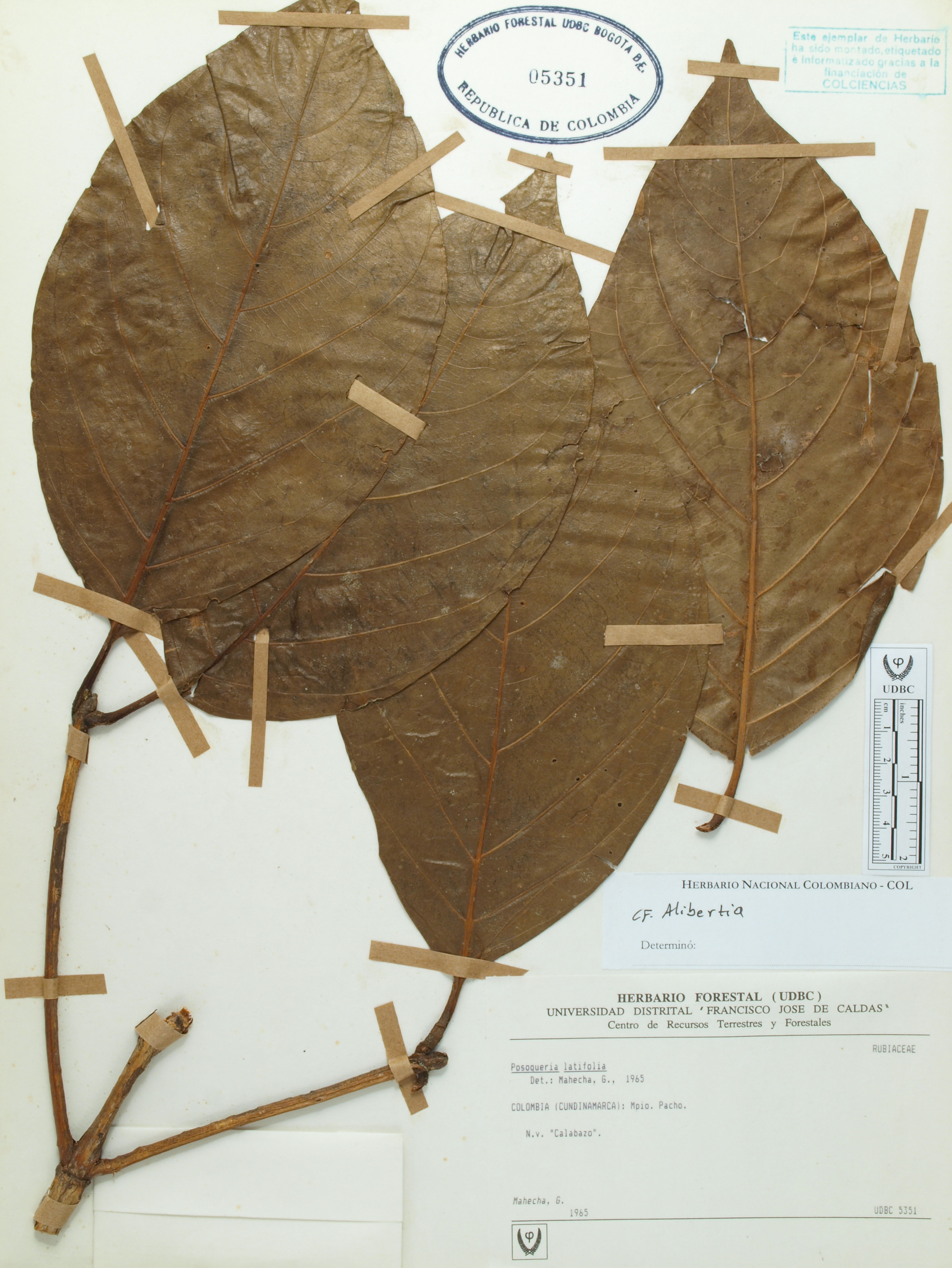 Fotografía del ejemplar Mahecha, G., determinado como Alibertia sp.