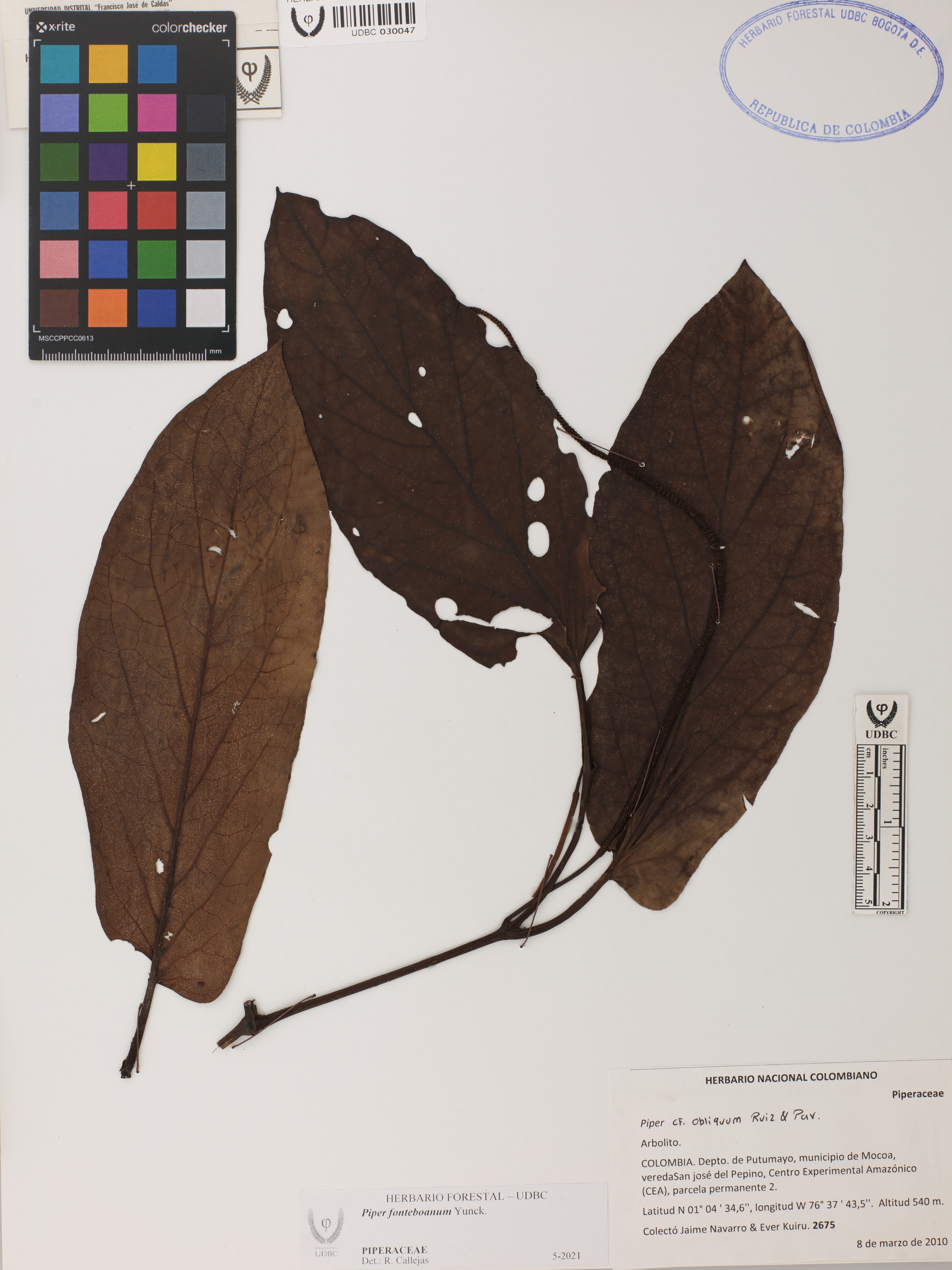 | dc.description | Fotografía del ejemplar Navarro, J. 2675, determinado como Piper fonteboanum en el año 2021 | |