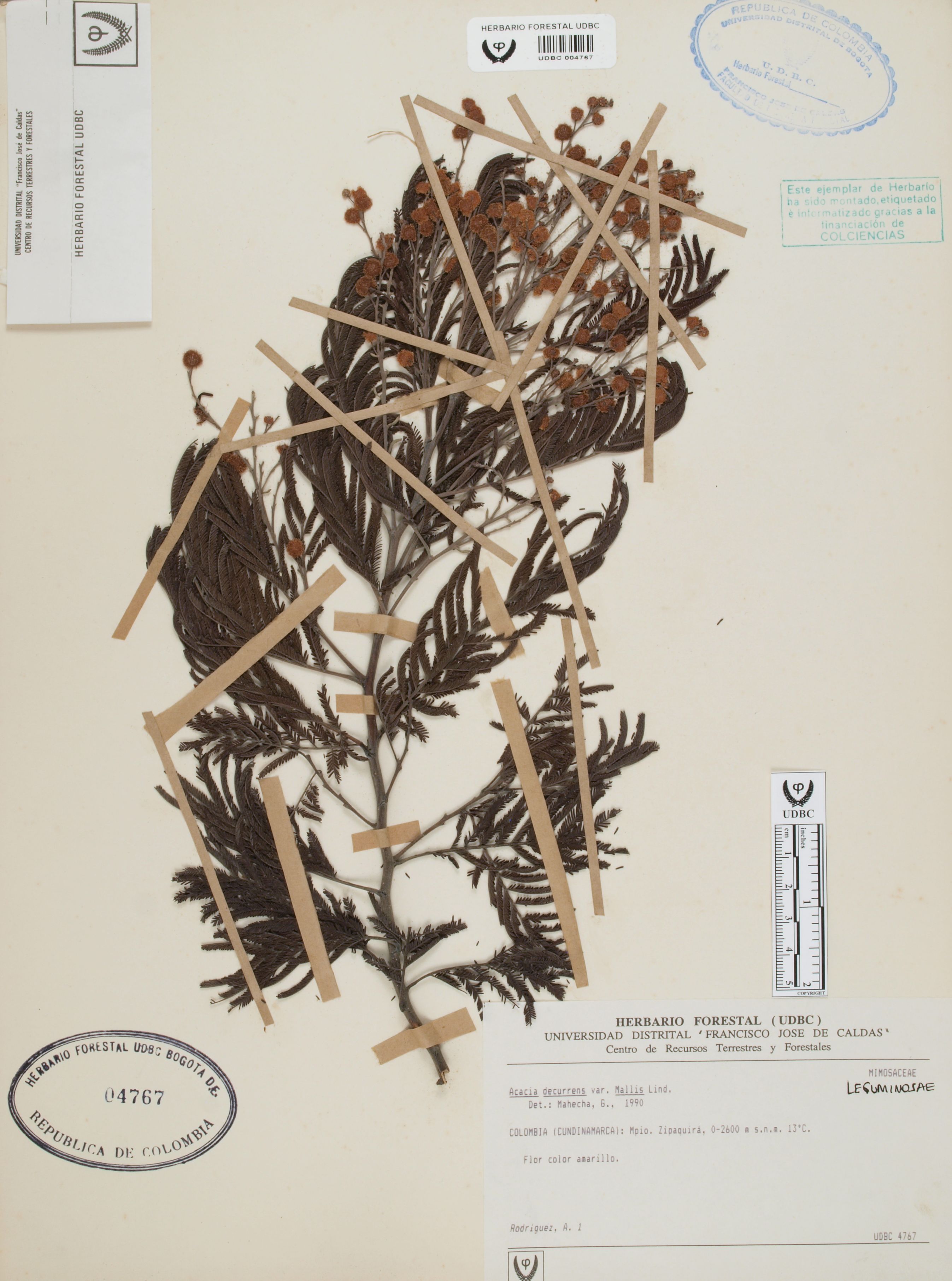 Fotografía del ejemplar Rodríguez, A. 1, determinado como Acacia dealbata