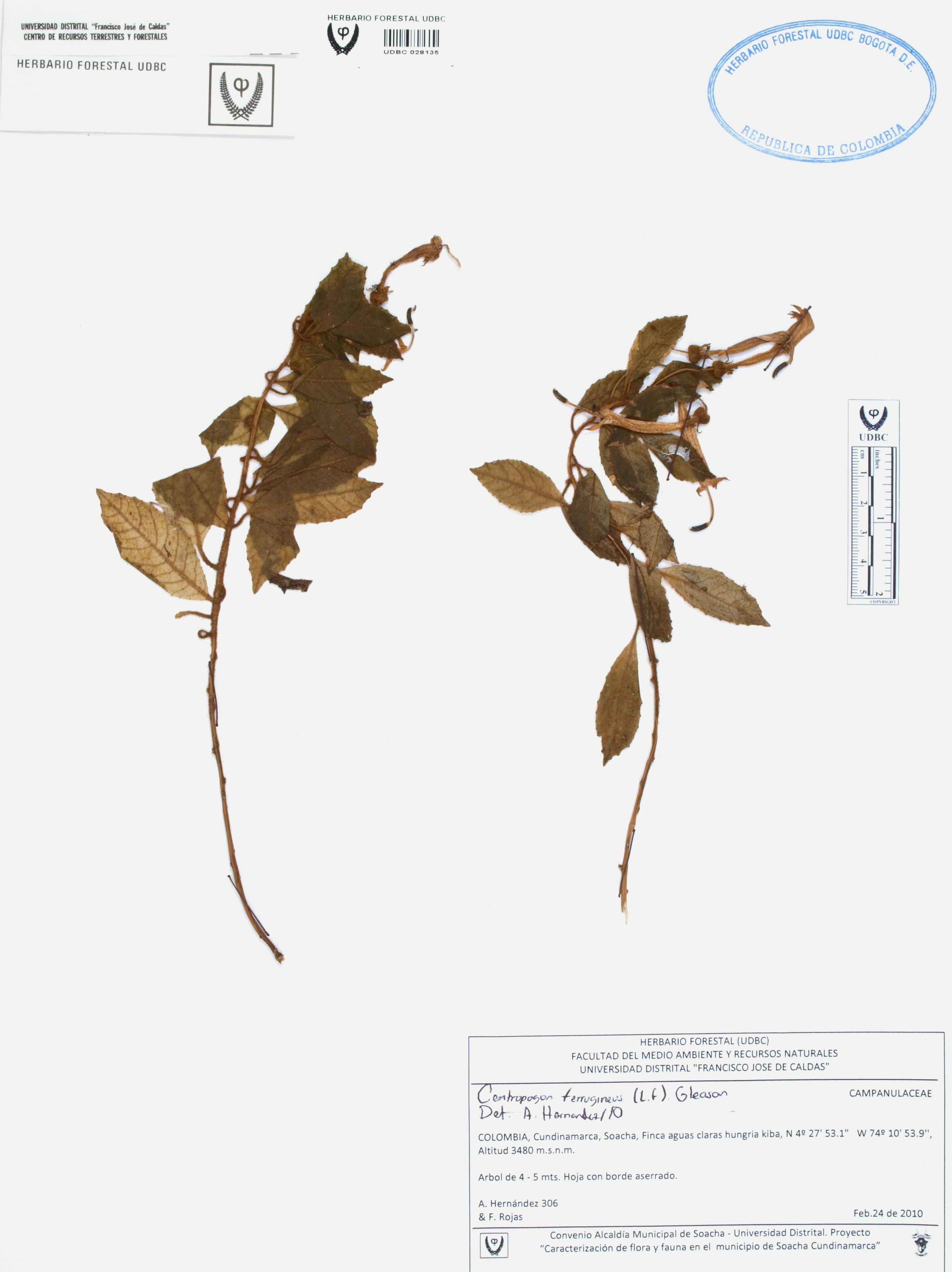 Fotografía del ejemplar Hernández, A. 306, determinado como Centropogon ferrugineus en el año 2010