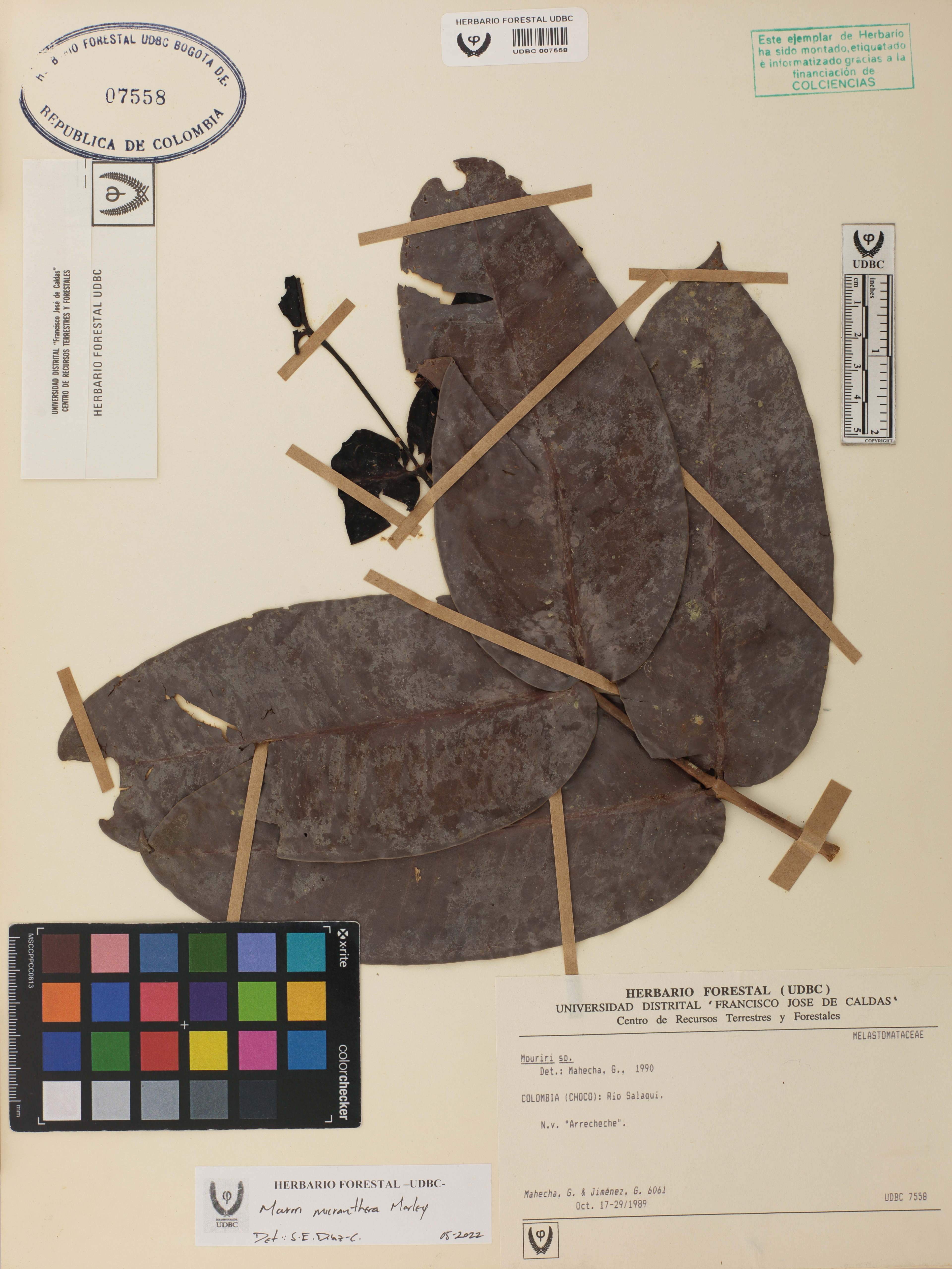 Fotografía del ejemplar Mahecha, G. 6061, determinado como Mouriri micranthera en el año 2022