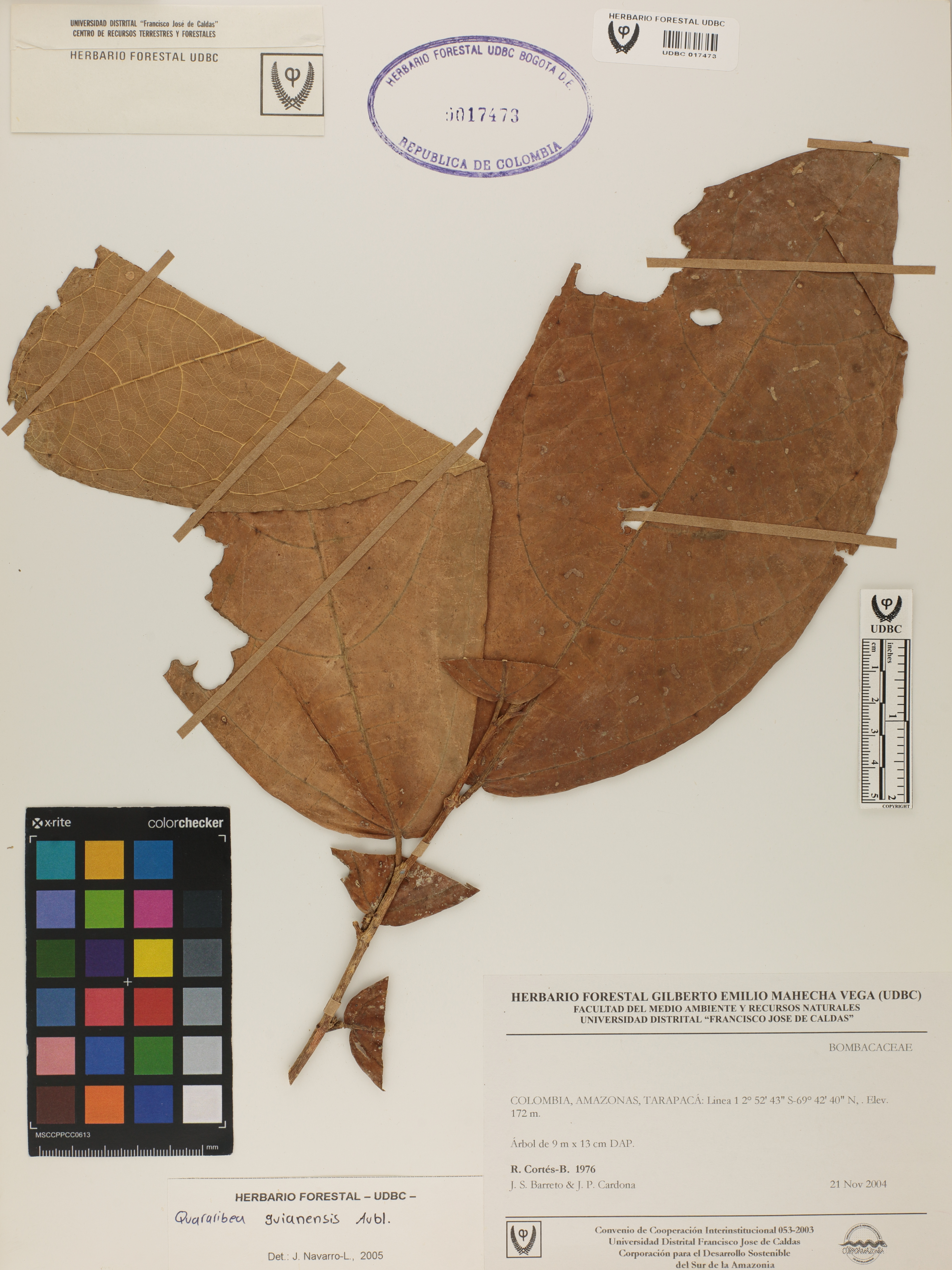 Fotografía del ejemplar Cortés-B., R. 1976, determinado como Quararibea guianensis en el año 2005