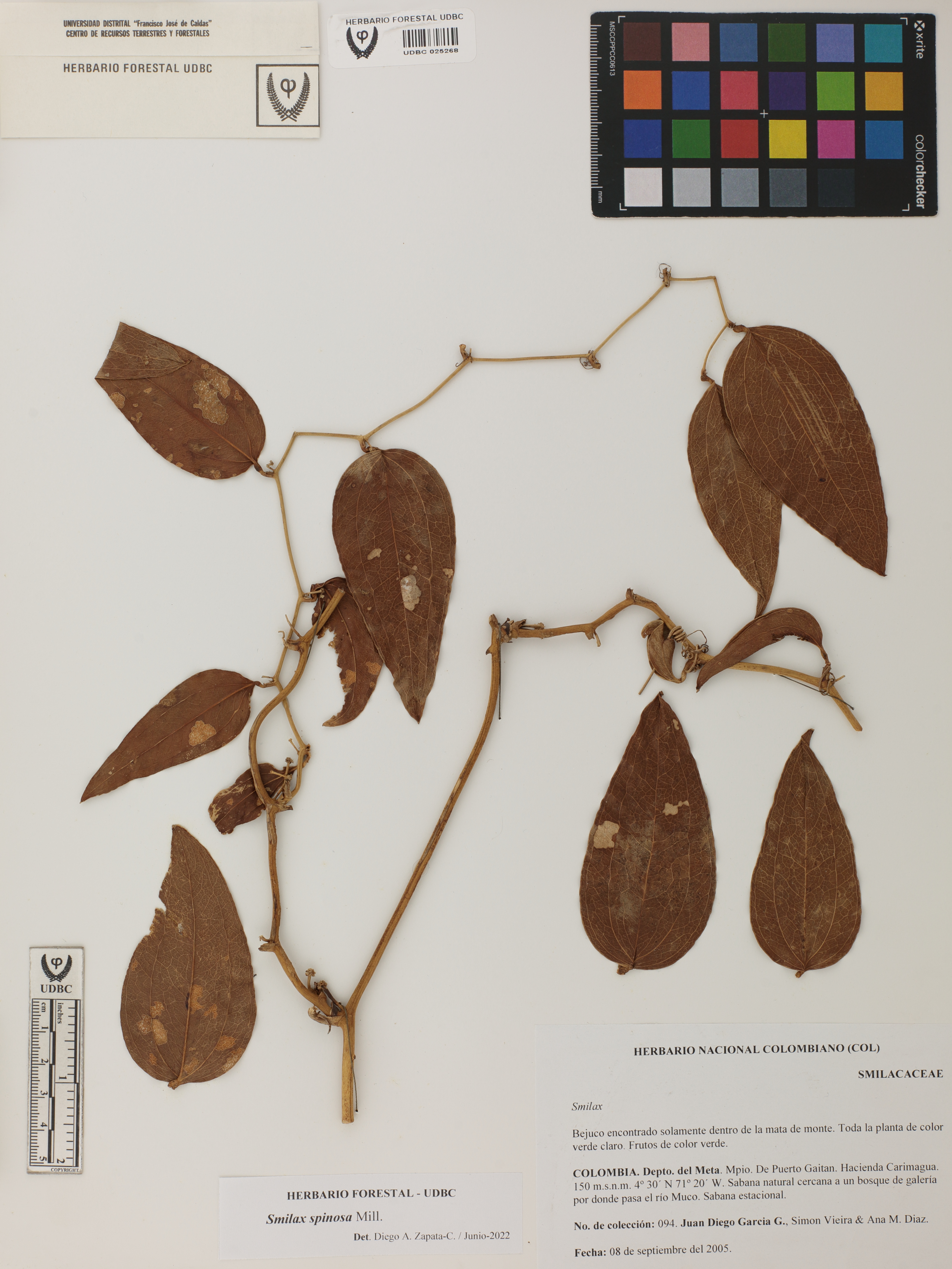 Fotografía del ejemplar García, J. 94, determinado como Smilax spinosa en el año 2022