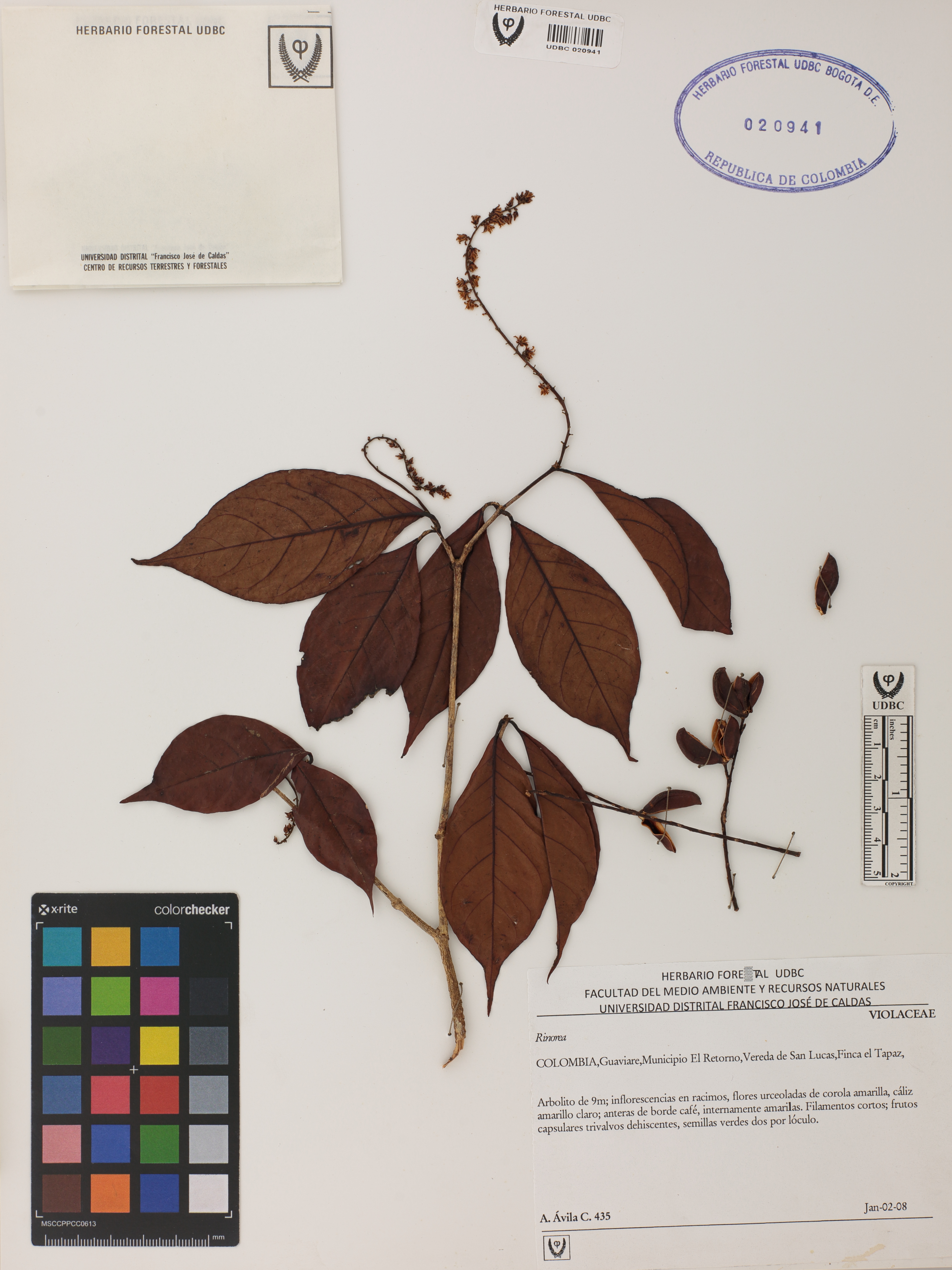 Fotografía del ejemplar Ávila, F. 435, determinado como Rinorea sp.