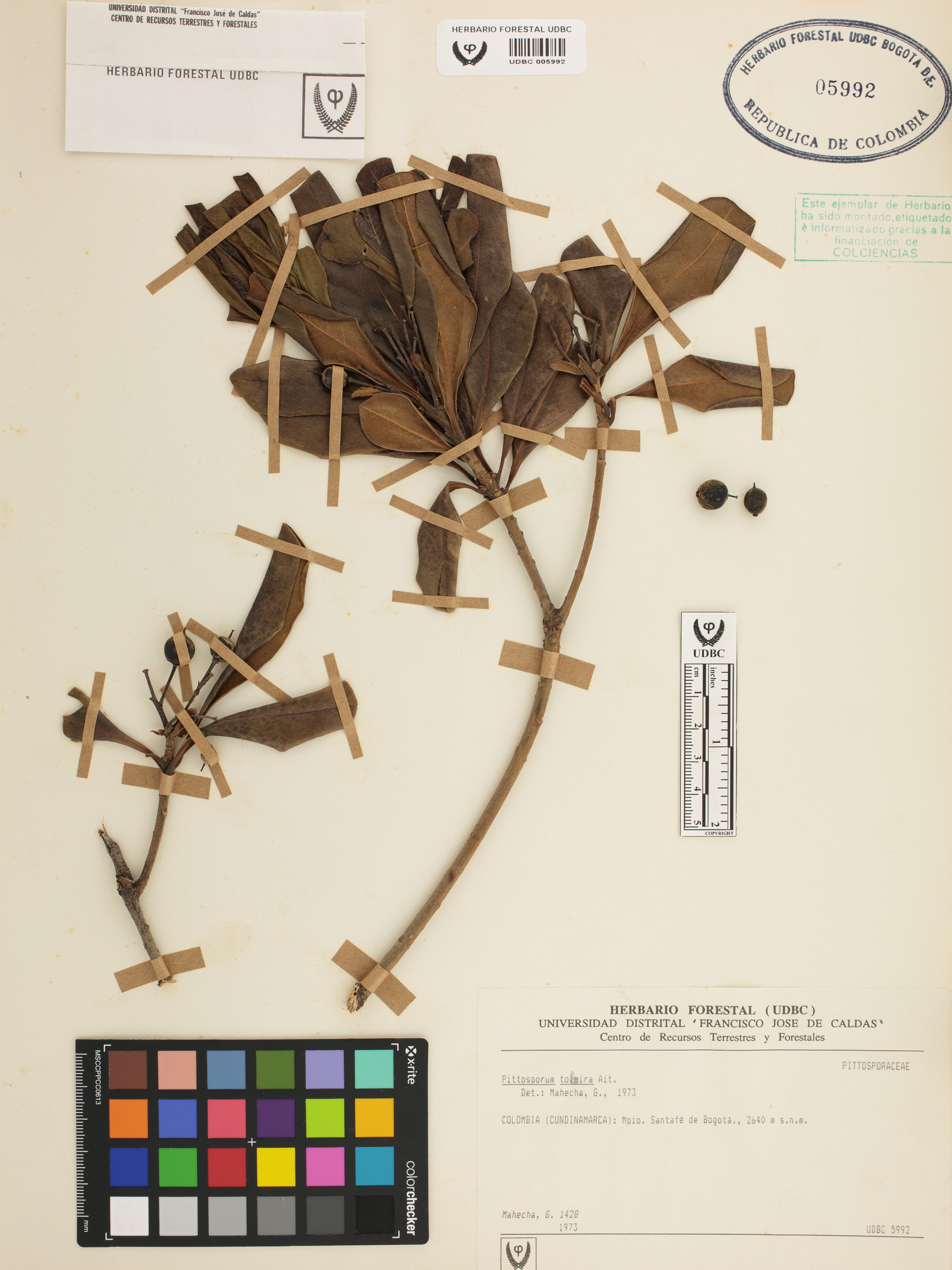 Fotografía del ejemplar Mahecha, G. 1428, determinado como Pittosporum tobira en el año 1973