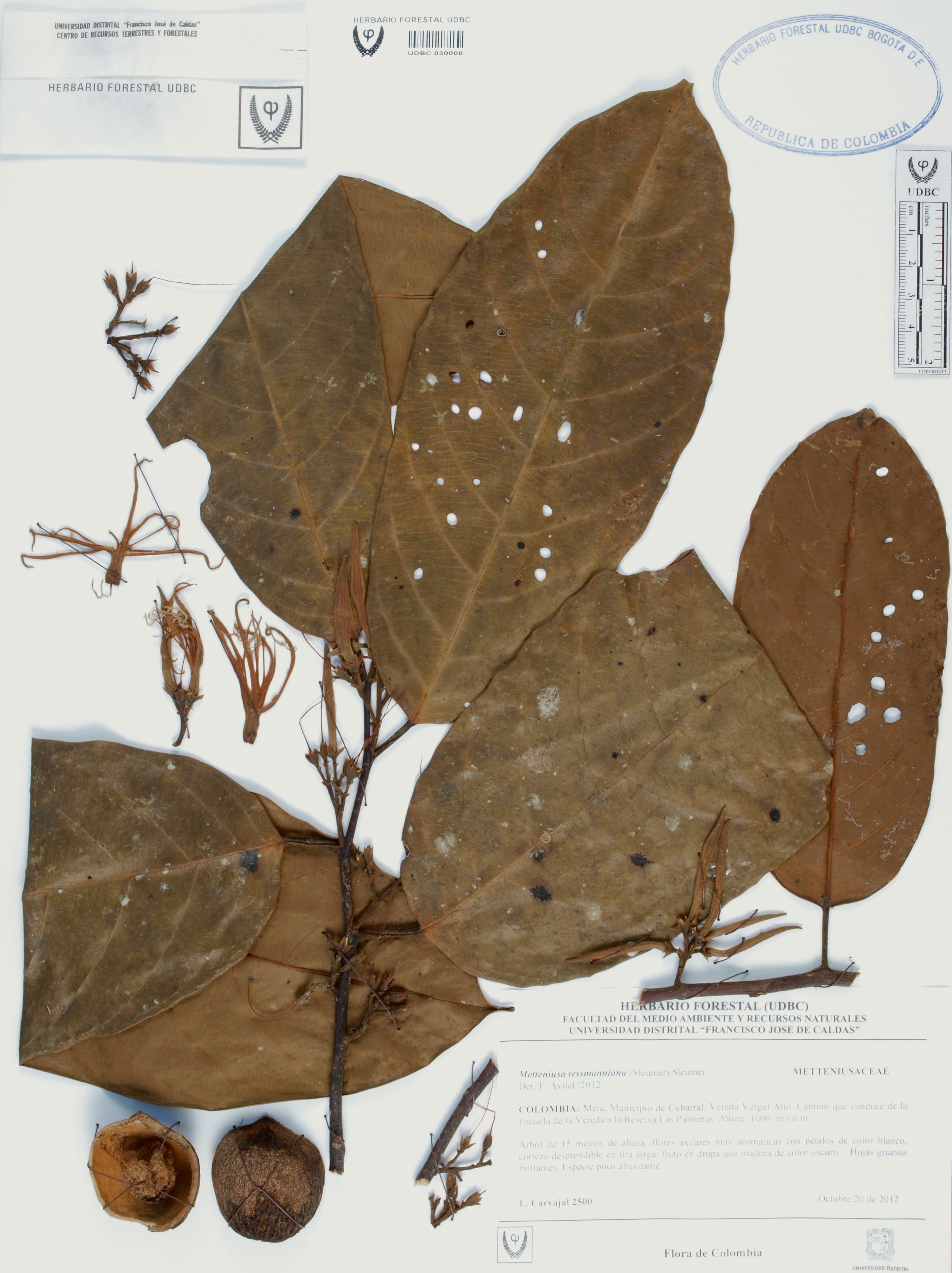 Fotografía del ejemplar Carvajal, L. 2500, determinado como Metteniusa tessmanniana en el año 2012