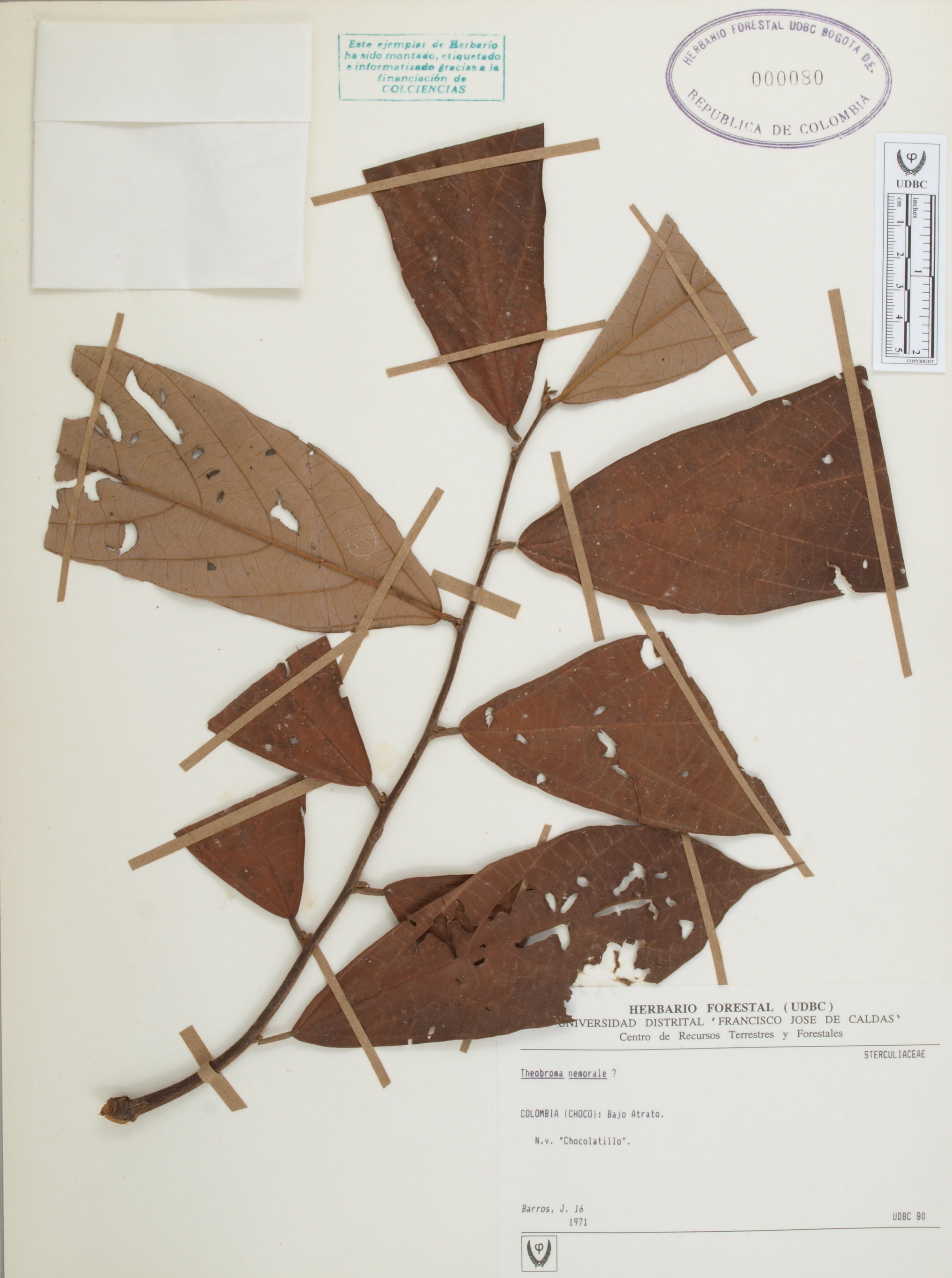 | dc.description | Fotografía del ejemplar Barros, J. 16, determinado como Theobroma nemorale | |