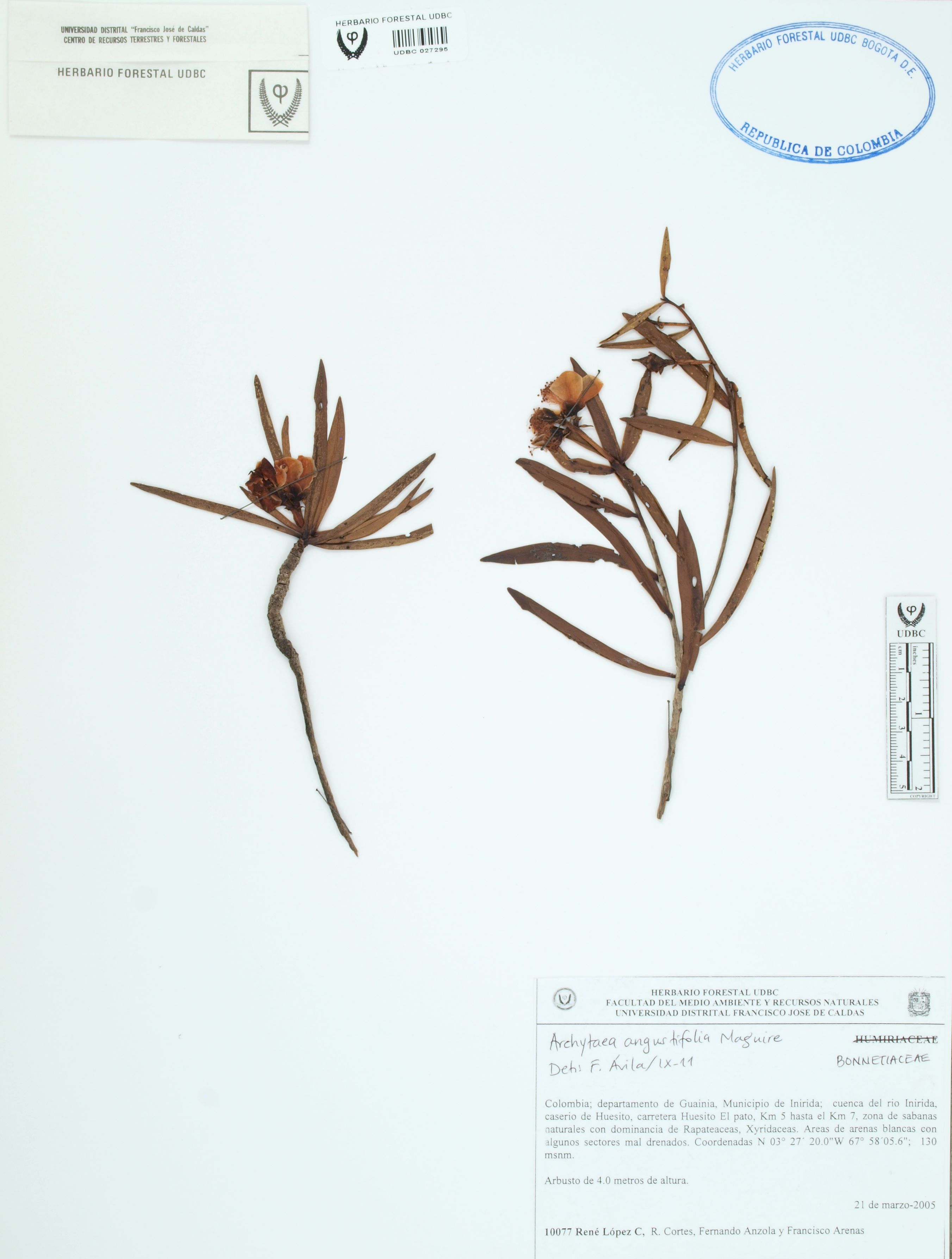 Fotografía del ejemplar López, R. 10077, determinado como Archytaea angustifolia en el año 2011