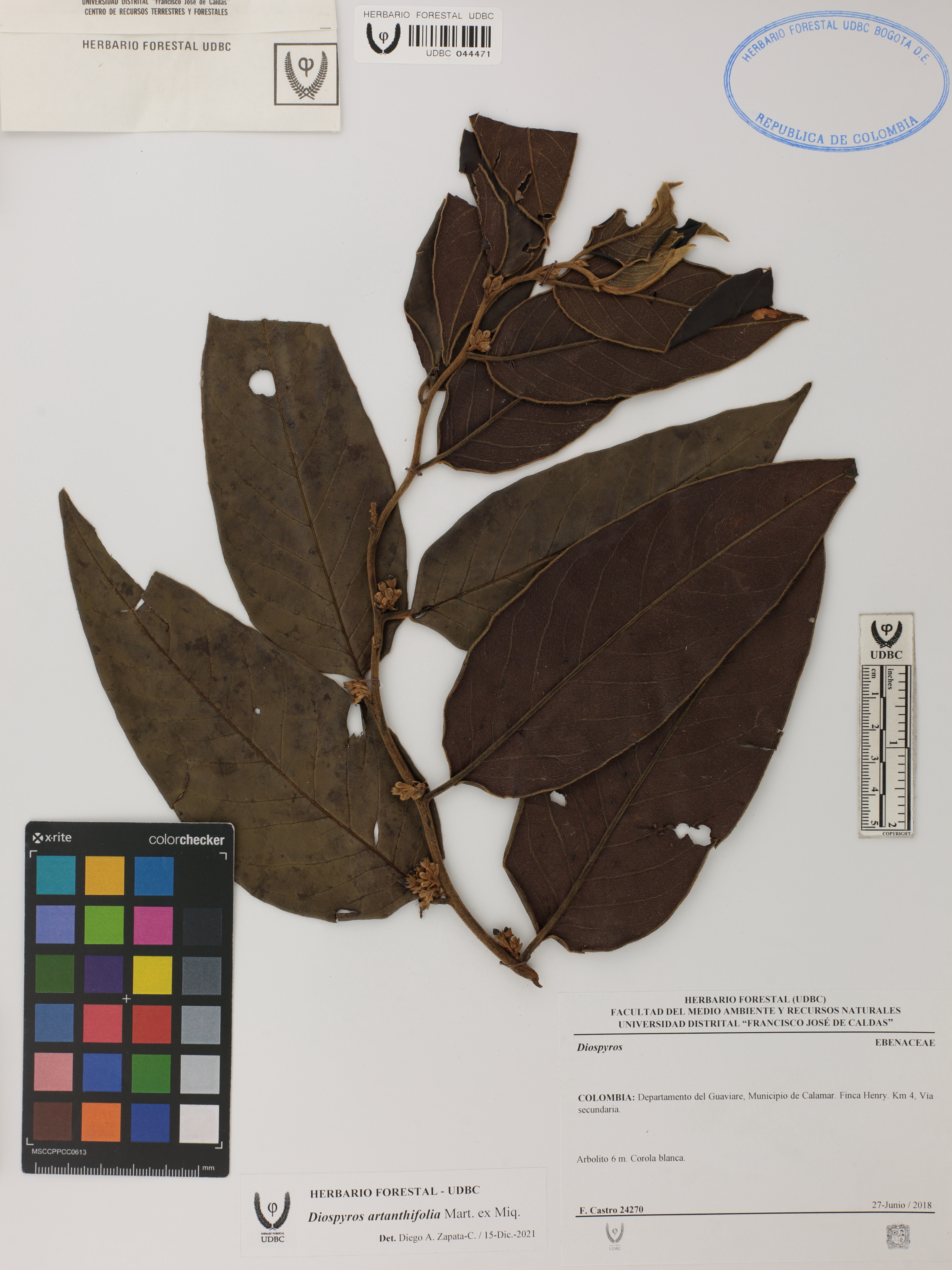 | dc.description | Fotografía del ejemplar Castro, F. 24270, determinado como Diospyros artanthifolia en el año 2021 | |