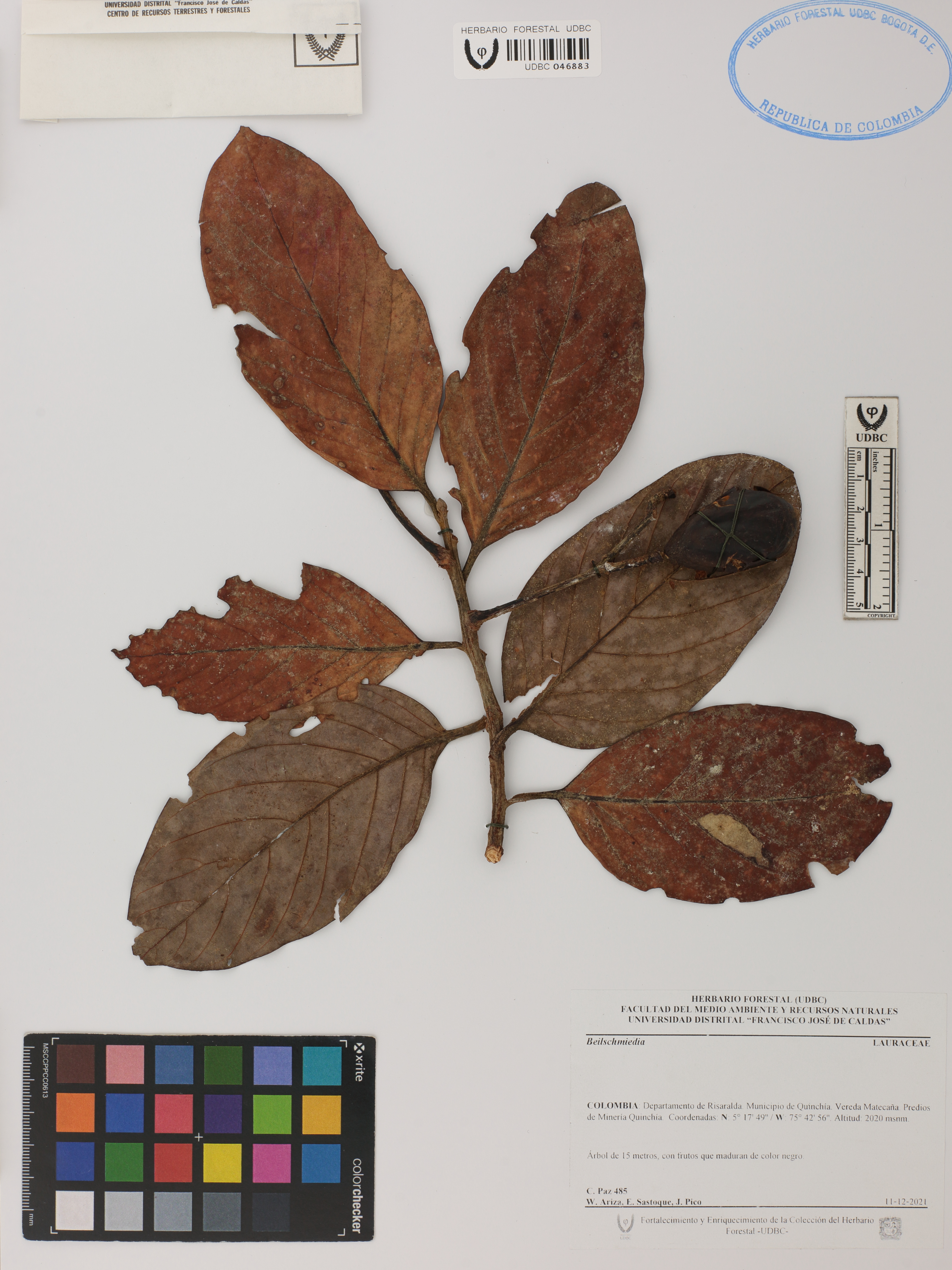 Fotografía del ejemplar Paz, C. 485, determinado como Beilschmiedia sp.