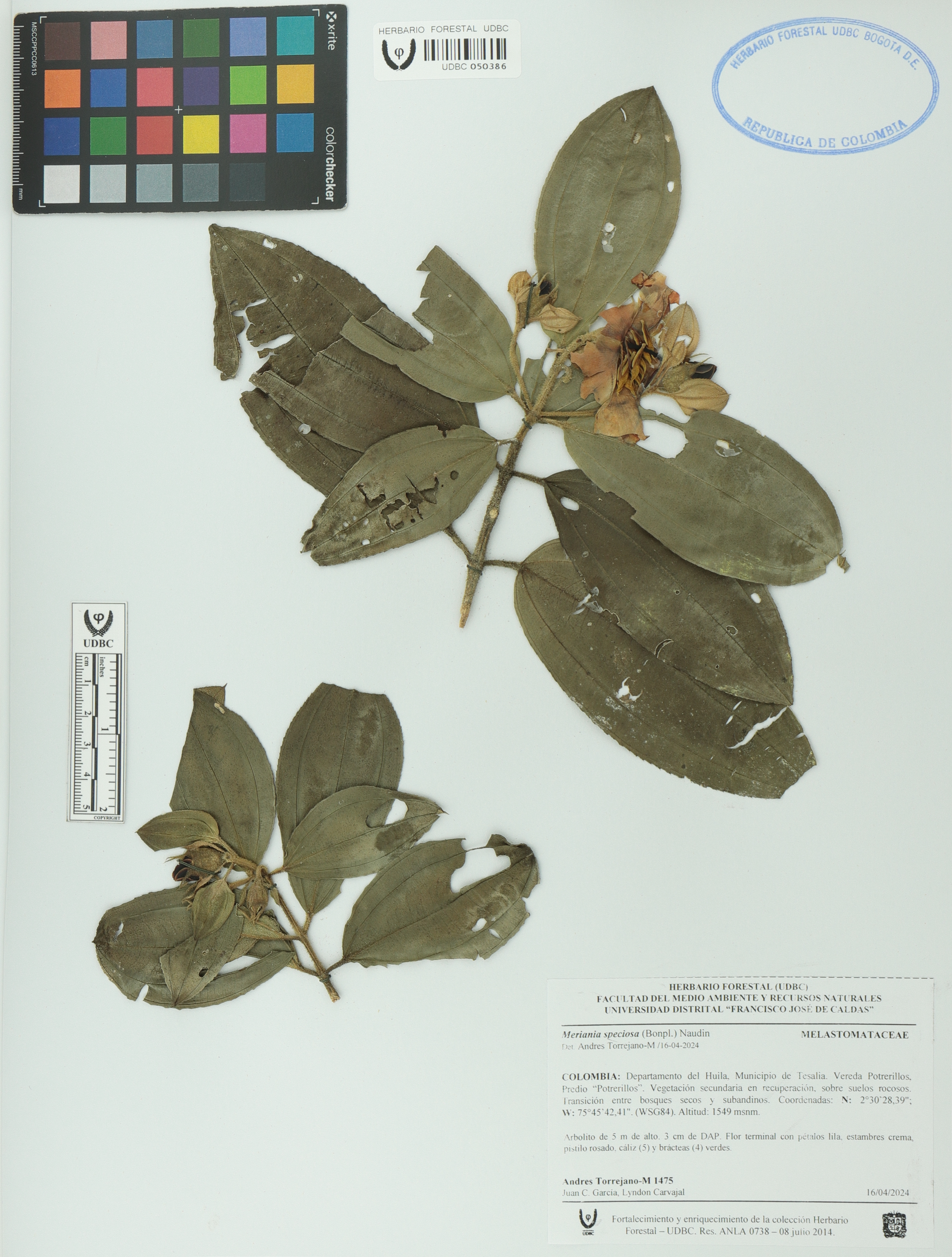 Fotografía del ejemplar Torrejano-M., A. 1475, determinado como Meriania speciosa en el año 2024