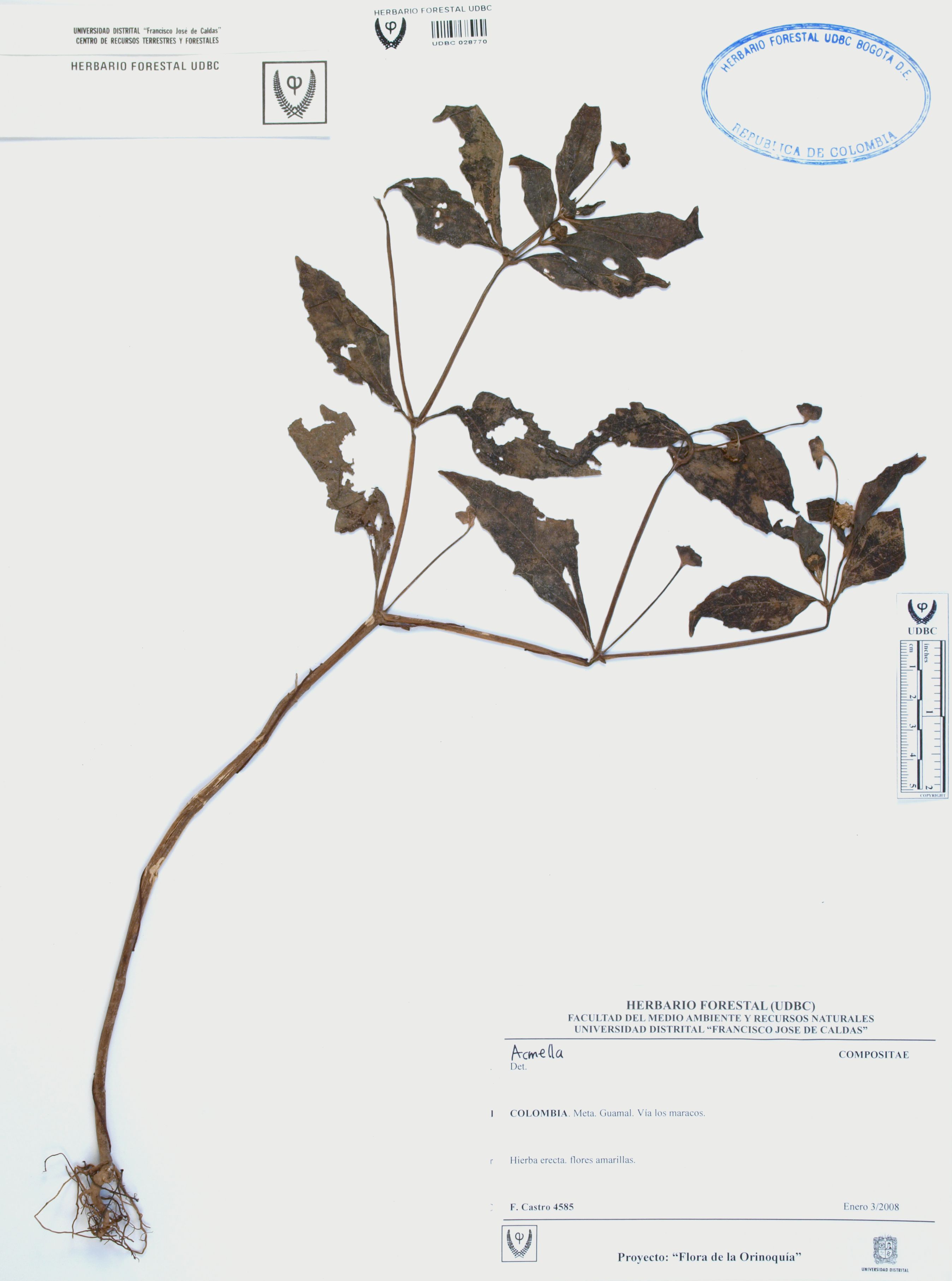 Fotografía del ejemplar Castro, F. 4585, determinado como Acmella sp.