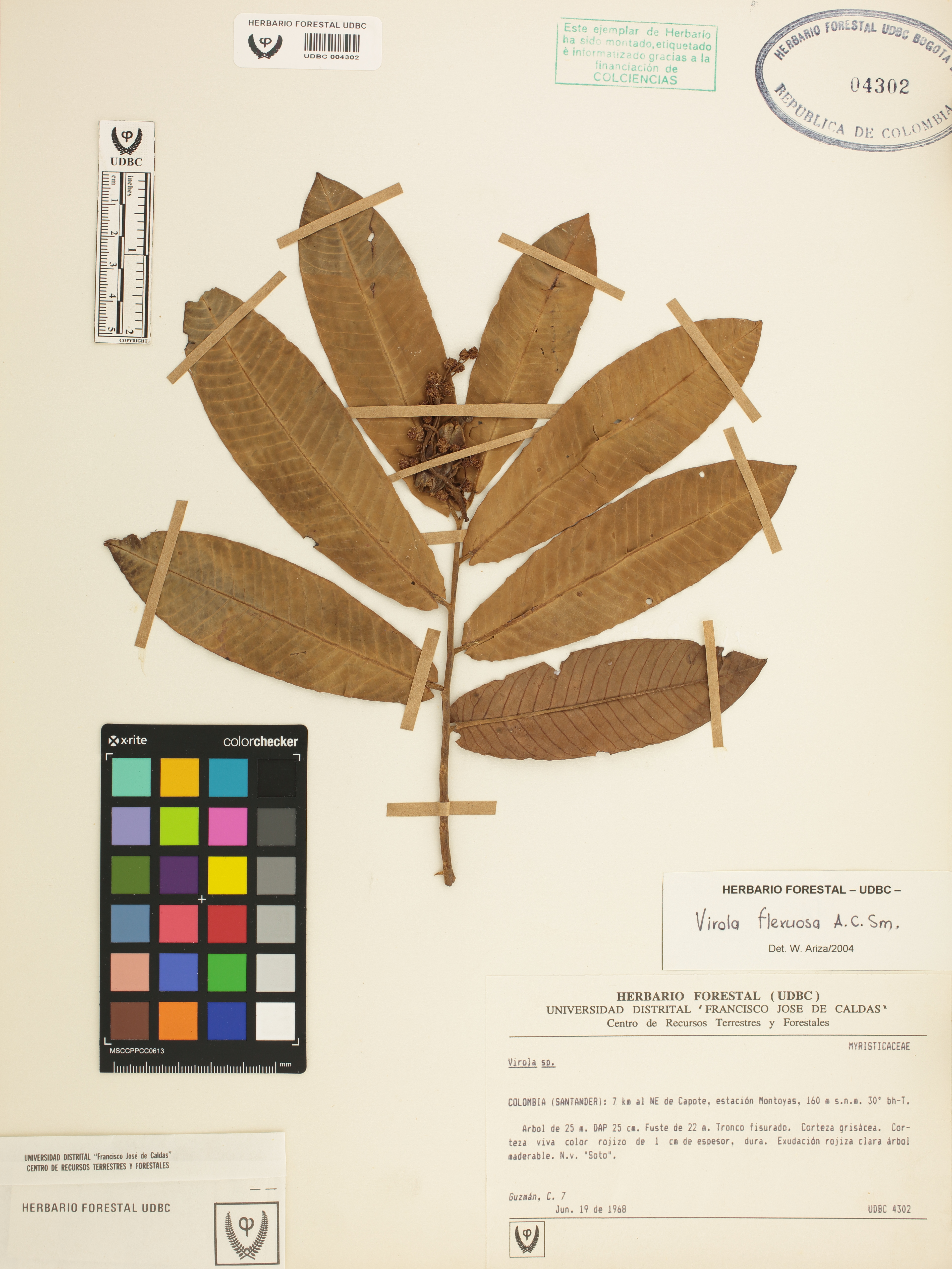 Fotografía del ejemplar Guzmán, C. 7, determinado como Virola flexuosa en el año 2004