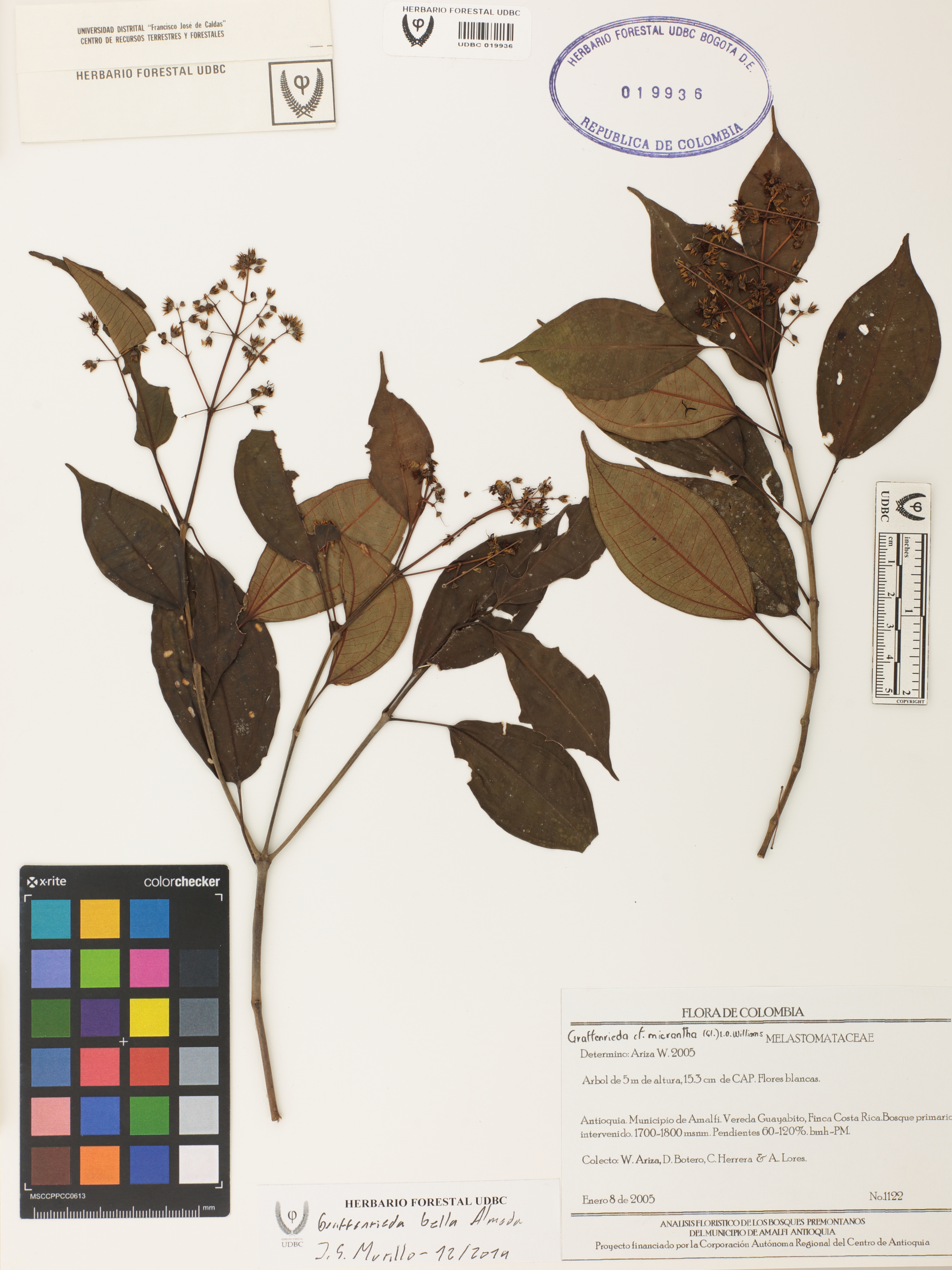 Fotografía del ejemplar Ariza, W. 1122, determinado como Graffenrieda bella en el año 2019