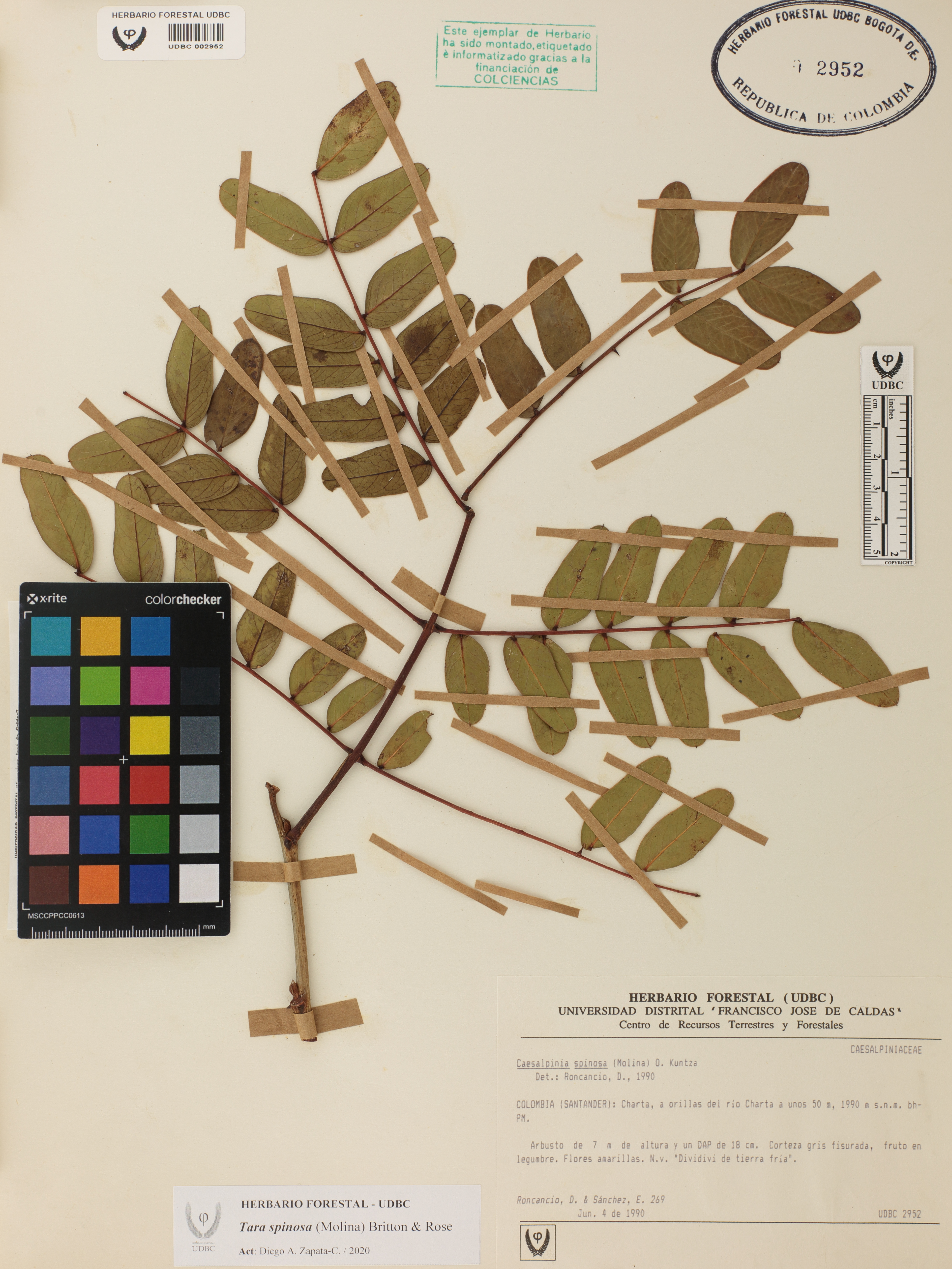 Fotografía del ejemplar Roncancio, D. 269, determinado como Tara spinosa en el año 1990