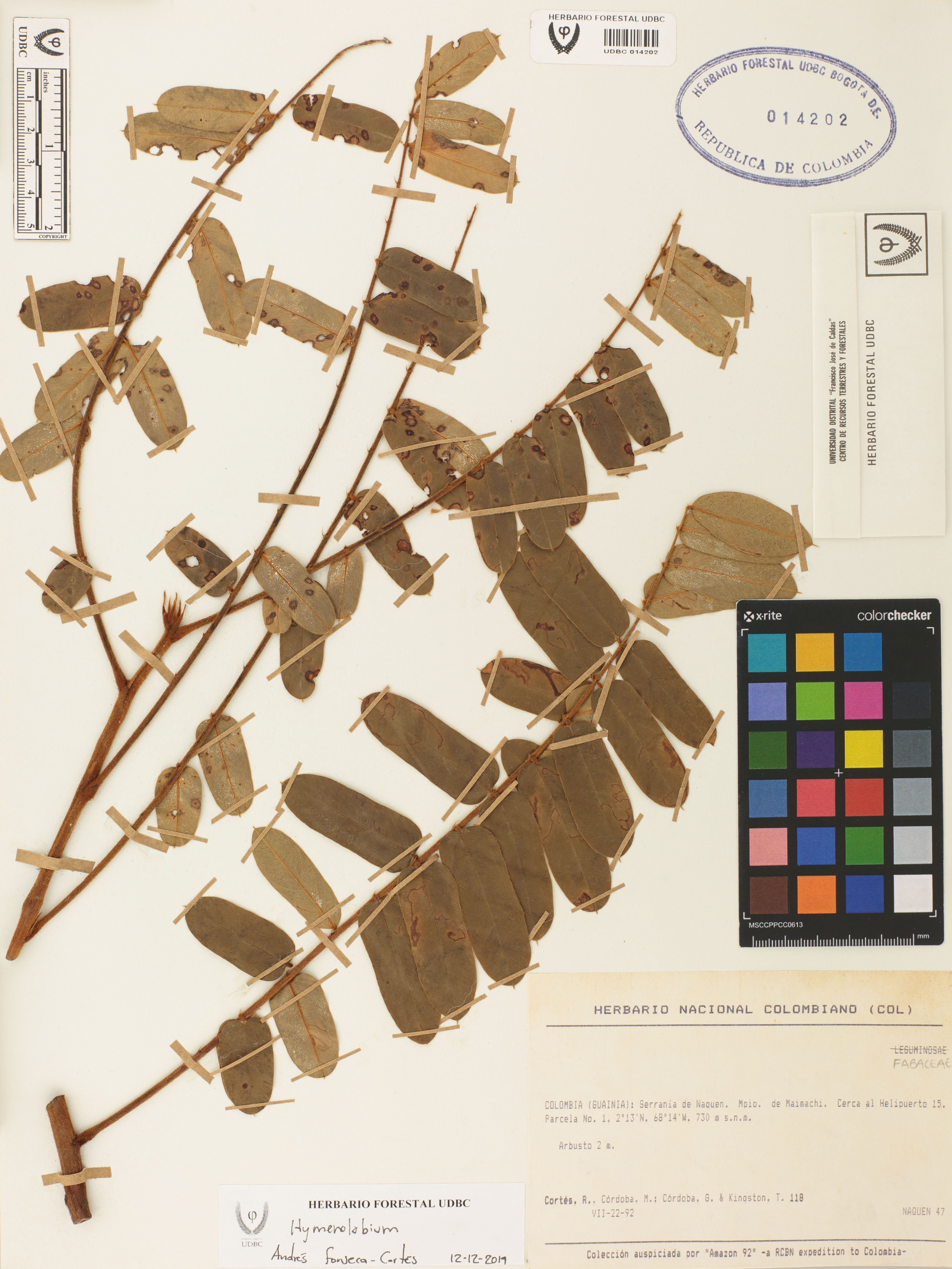 | dc.description | Fotografía del ejemplar Cortés, R. 118, determinado como Hymenolobium sp. en el año 2019 | |