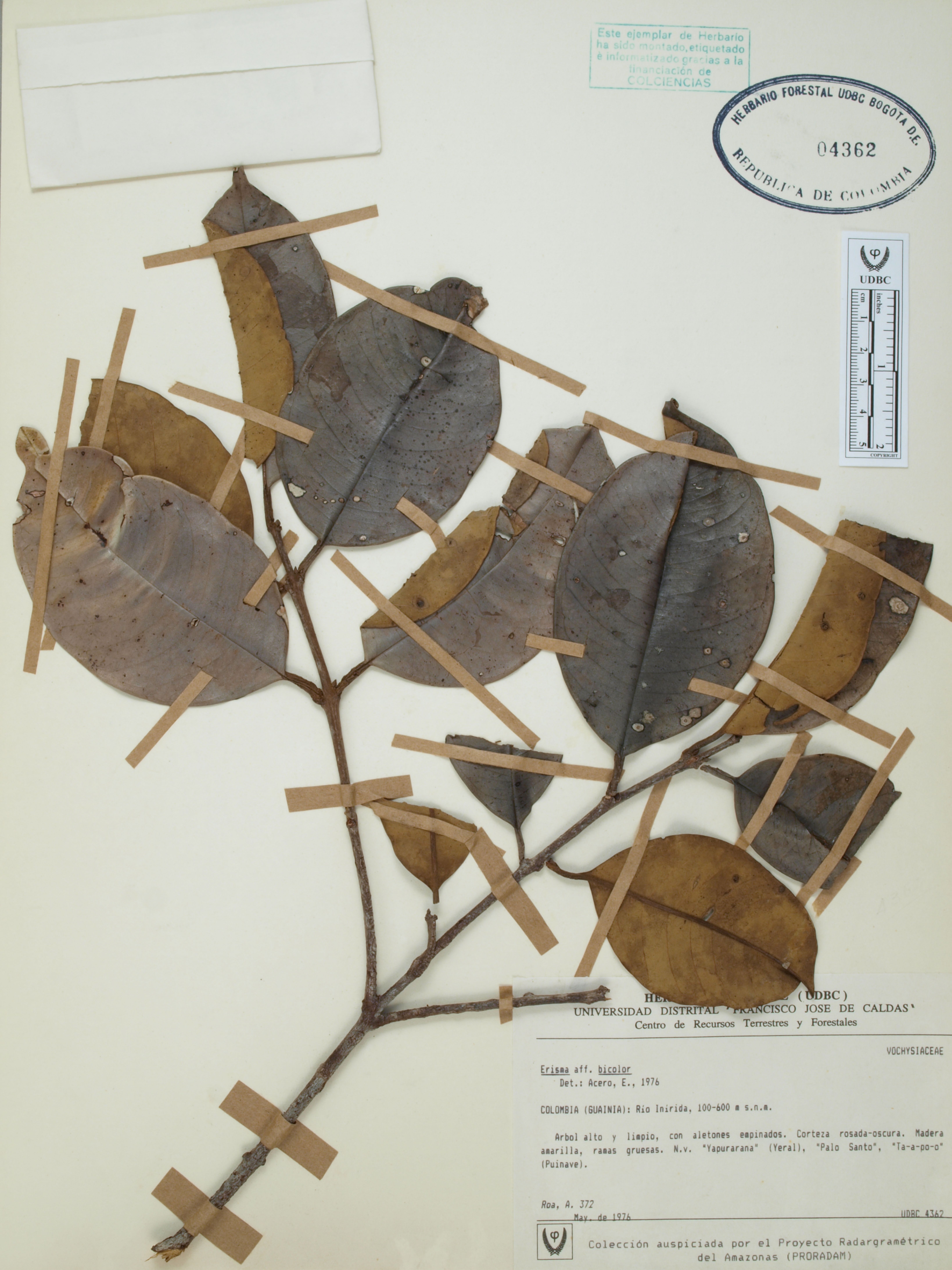 | dc.description | Fotografía del ejemplar Roa, A. 372, determinado como Erisma bicolor en el año 1976 | |