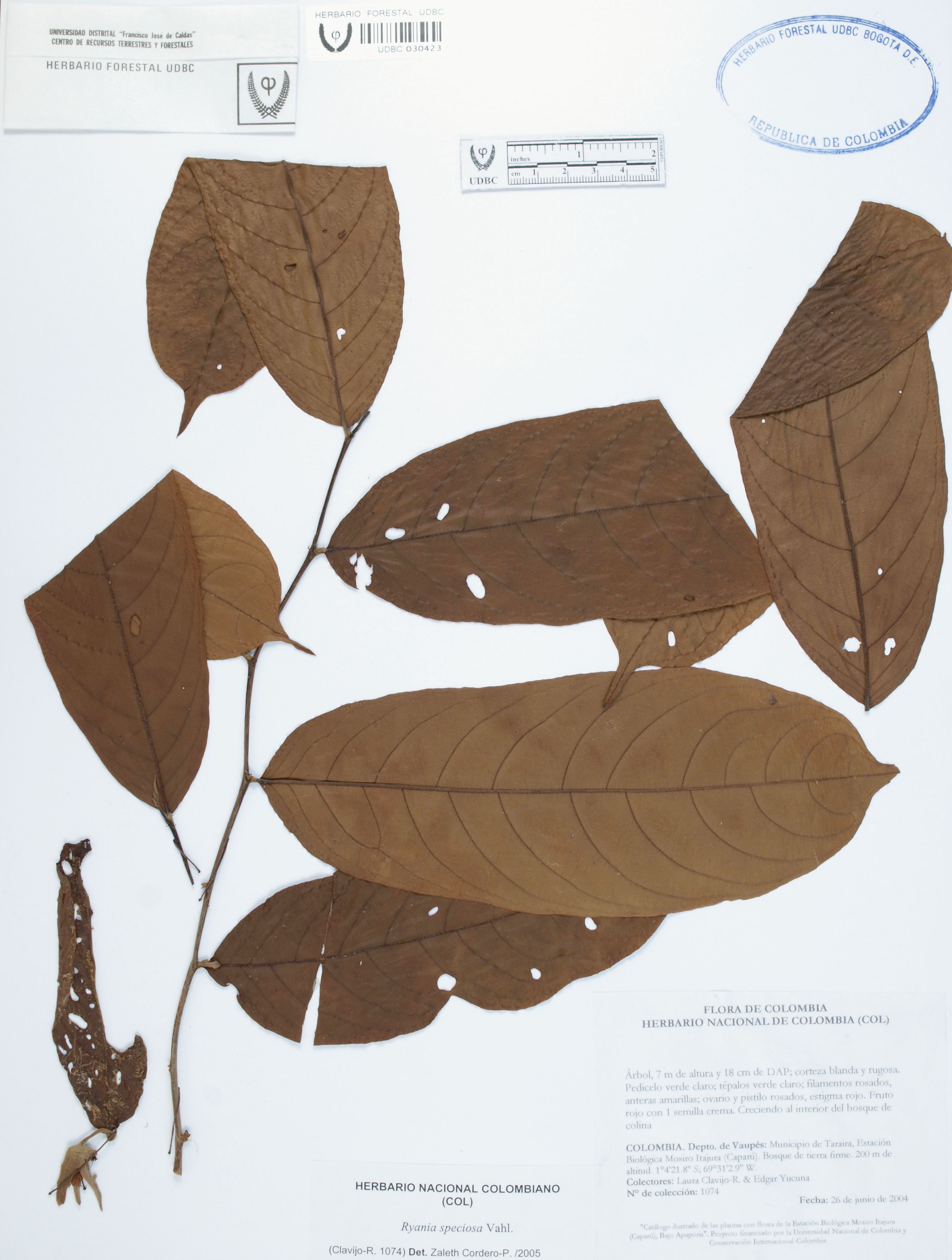 | dc.description | Fotografía del ejemplar Clavijo-R., L. 1074, determinado como Ryania speciosa en el año 2005 | |