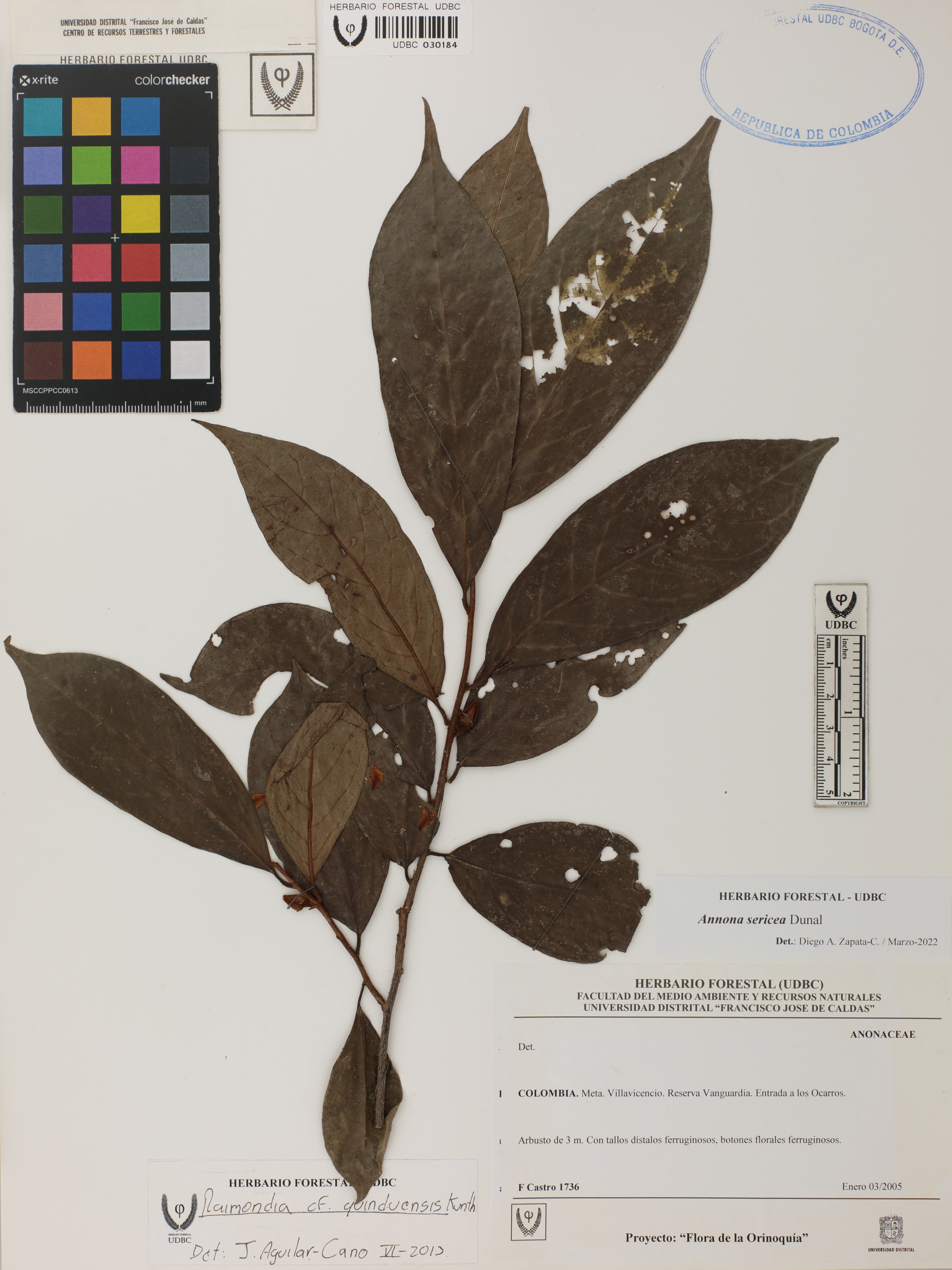 Fotografía del ejemplar Castro, F. 1736, determinado como Annona sericea en el año 2022