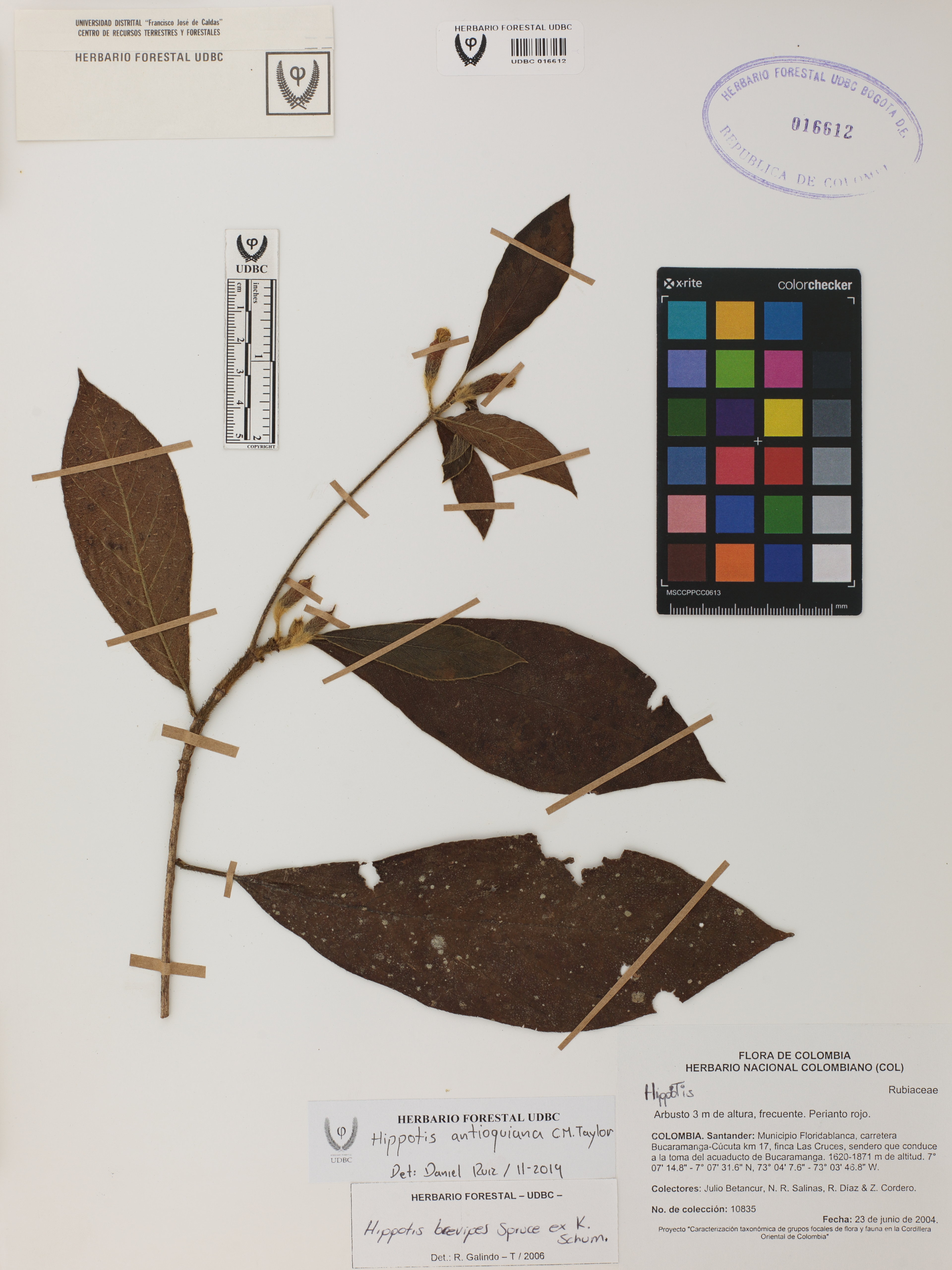 Fotografía del ejemplar Betancur, J. 10835, determinado como Hippotis antioquiana en el año 2019