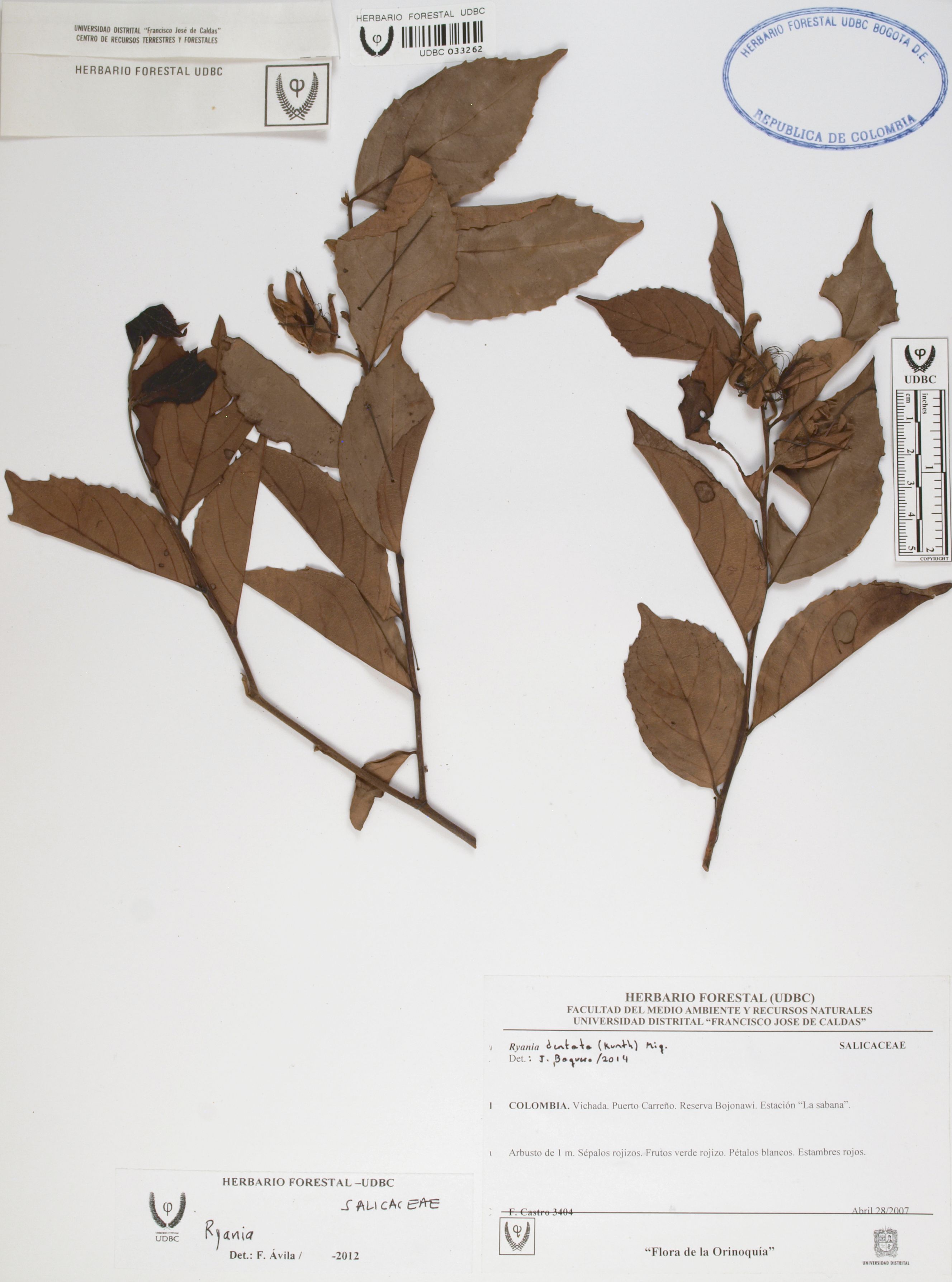 Fotografía del ejemplar Castro, F. 3404, determinado como Ryania dentata en el año 2014