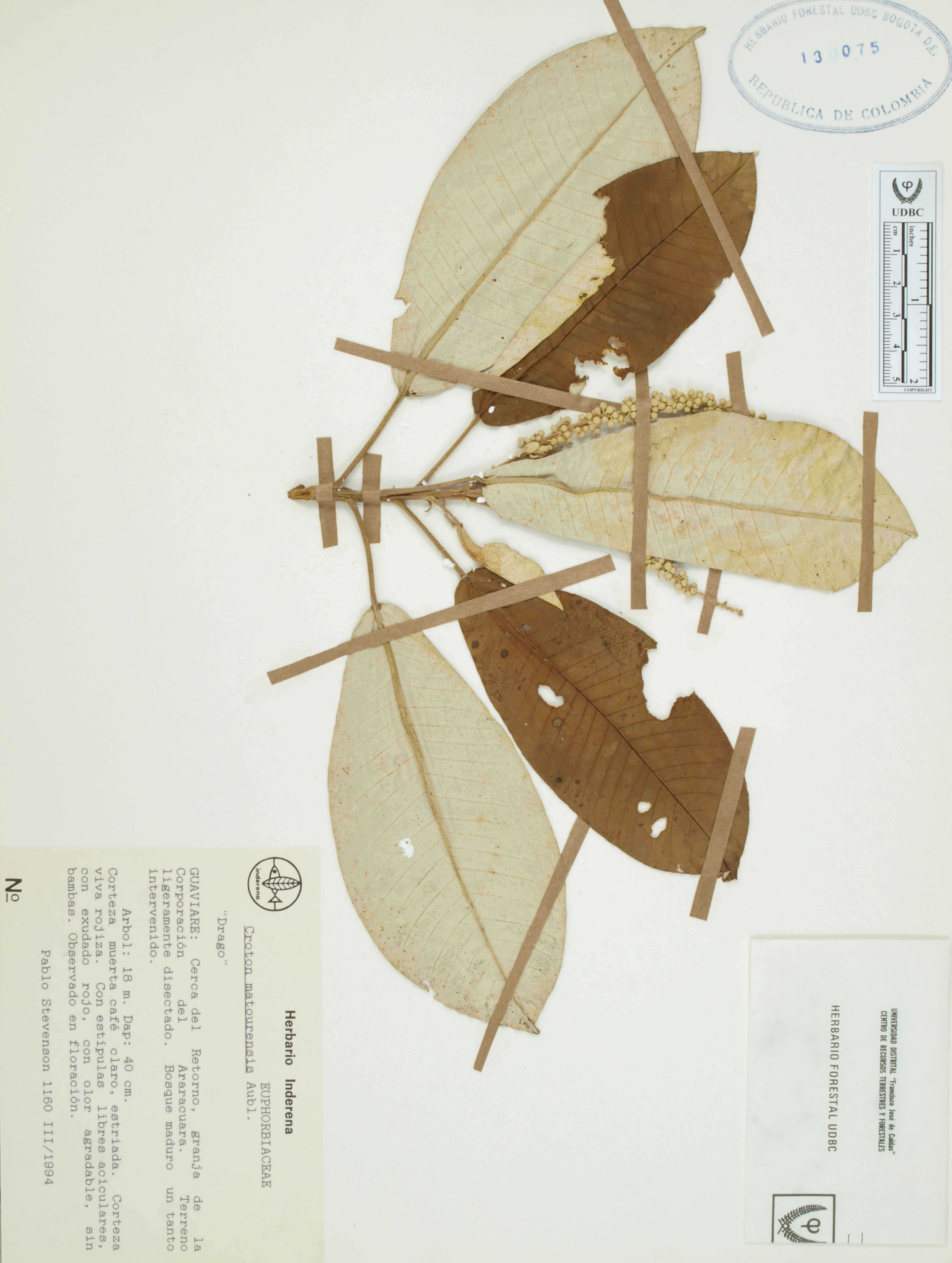 Fotografía del ejemplar Stevenson, P. 1160, determinado como Croton matourensis