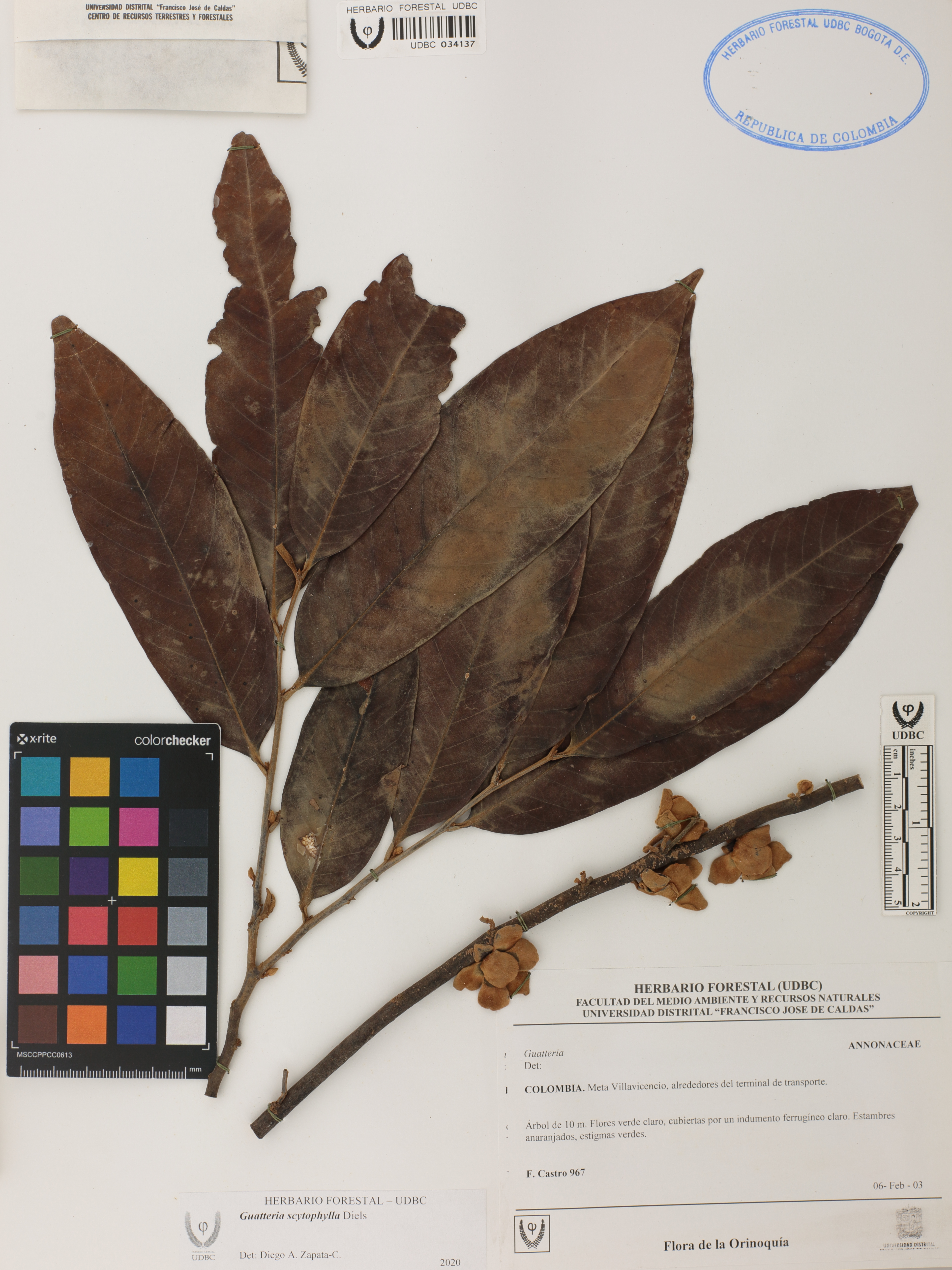 | dc.description | Fotografía del ejemplar Castro, F. 967, determinado como Guatteria scytophylla en el año 2020 | |