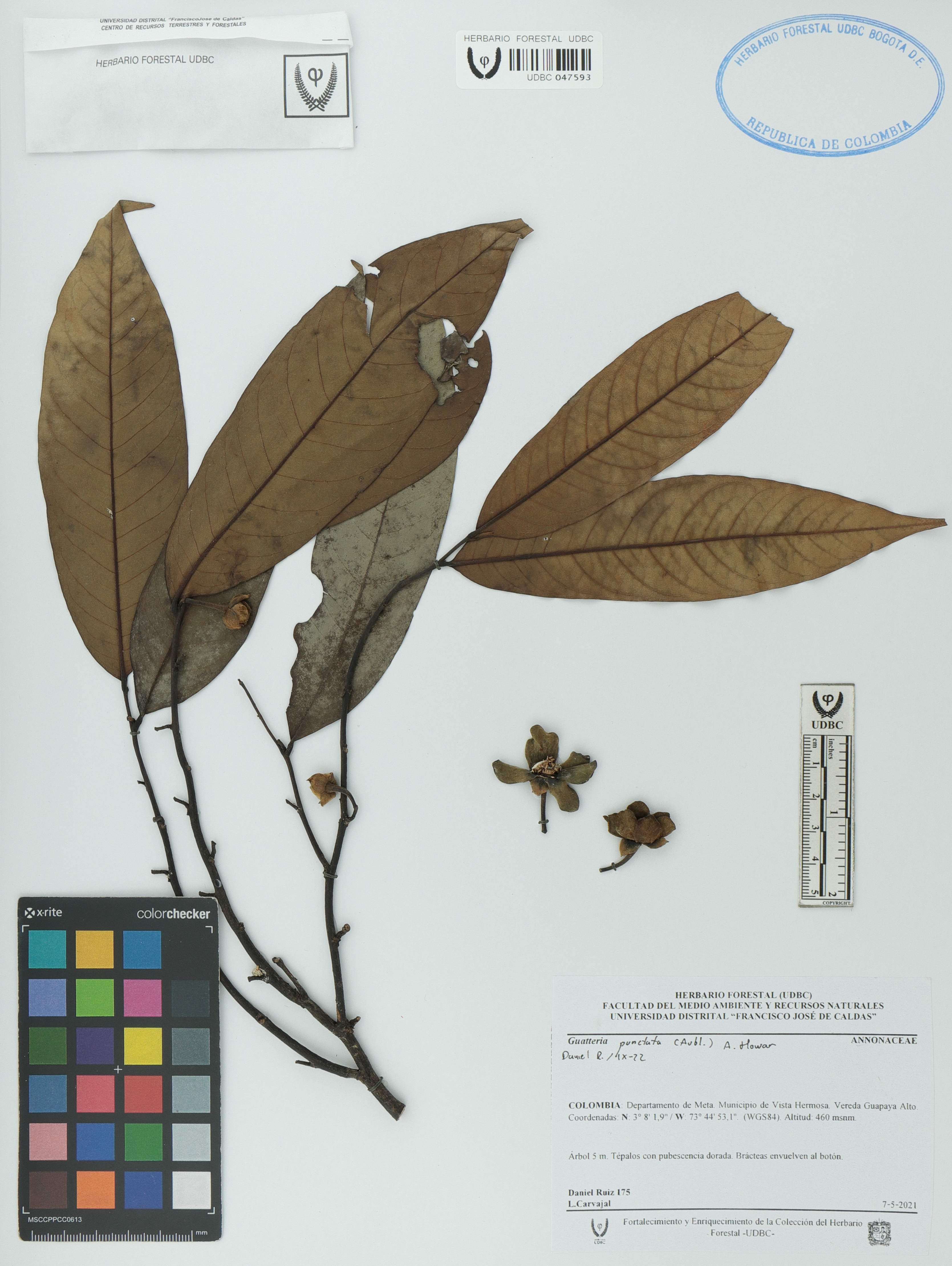 | dc.description | Fotografía del ejemplar Ruiz, Daniel 175, determinado como Guatteria scytophylla en el año 2023 | |