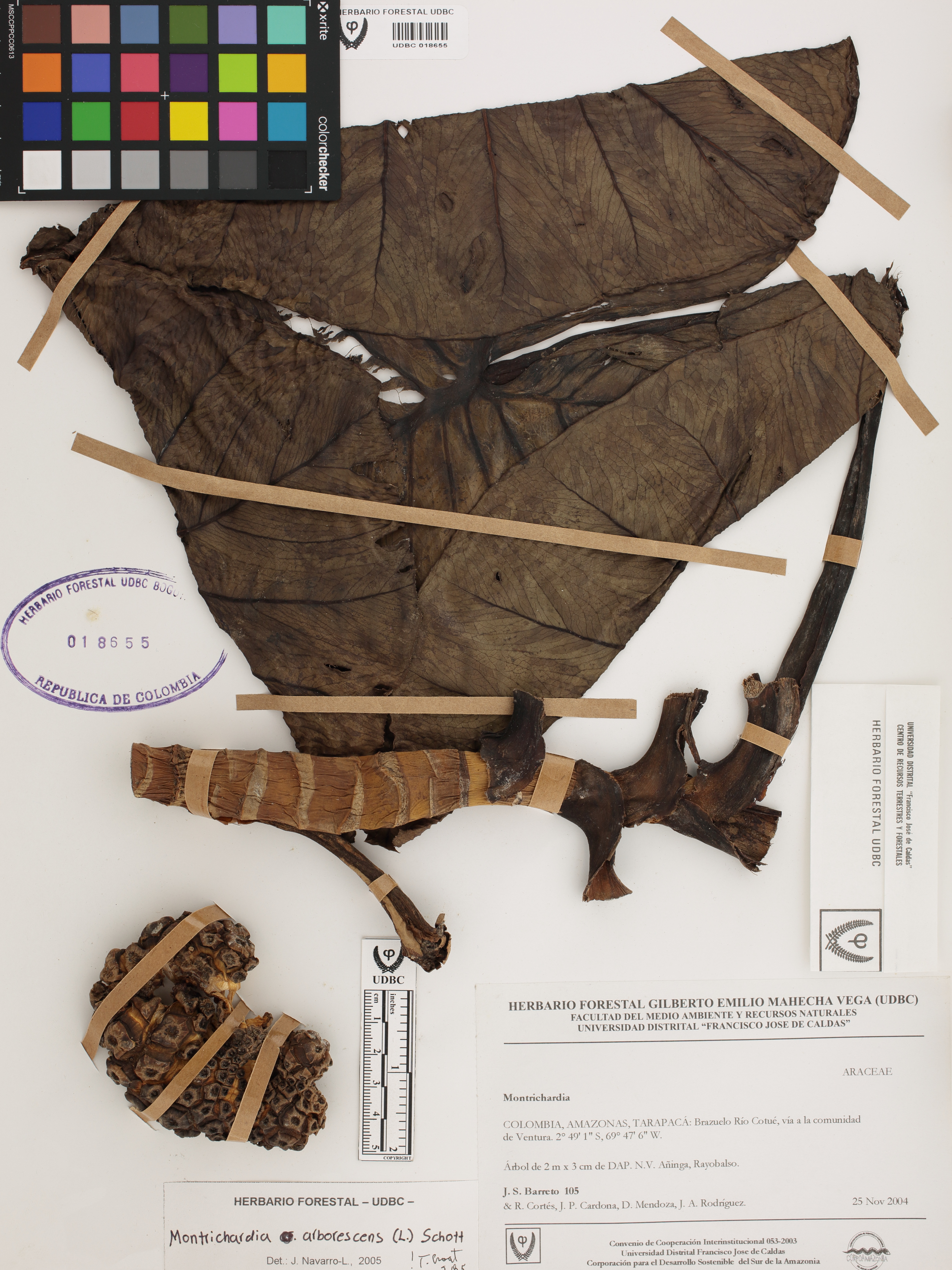 Fotografía del ejemplar Barreto, J. 105, determinado como Montrichardia arborescens en el año 2005