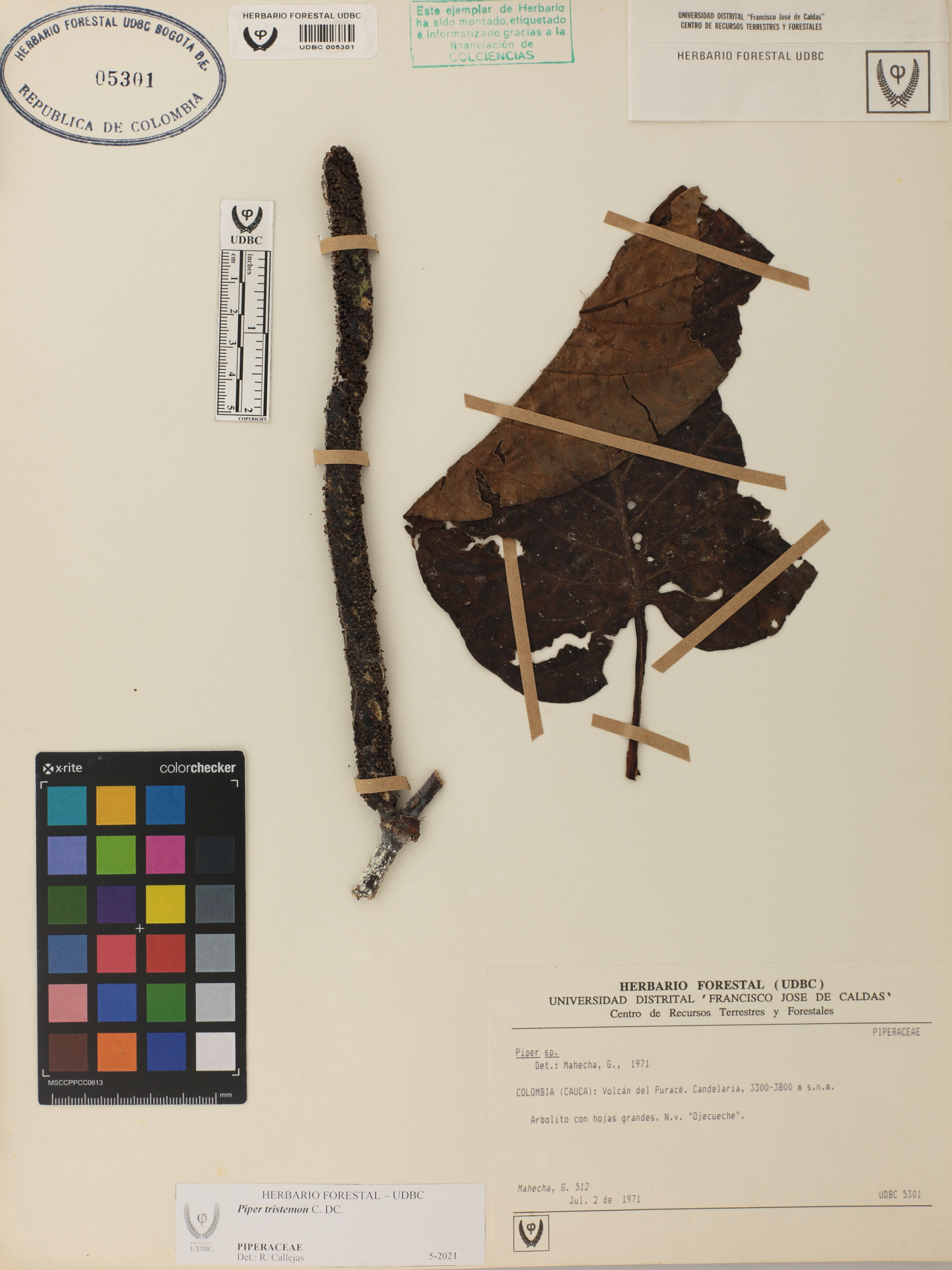 Fotografía del ejemplar Mahecha, G. 512, determinado como Piper tristemon en el año 2021