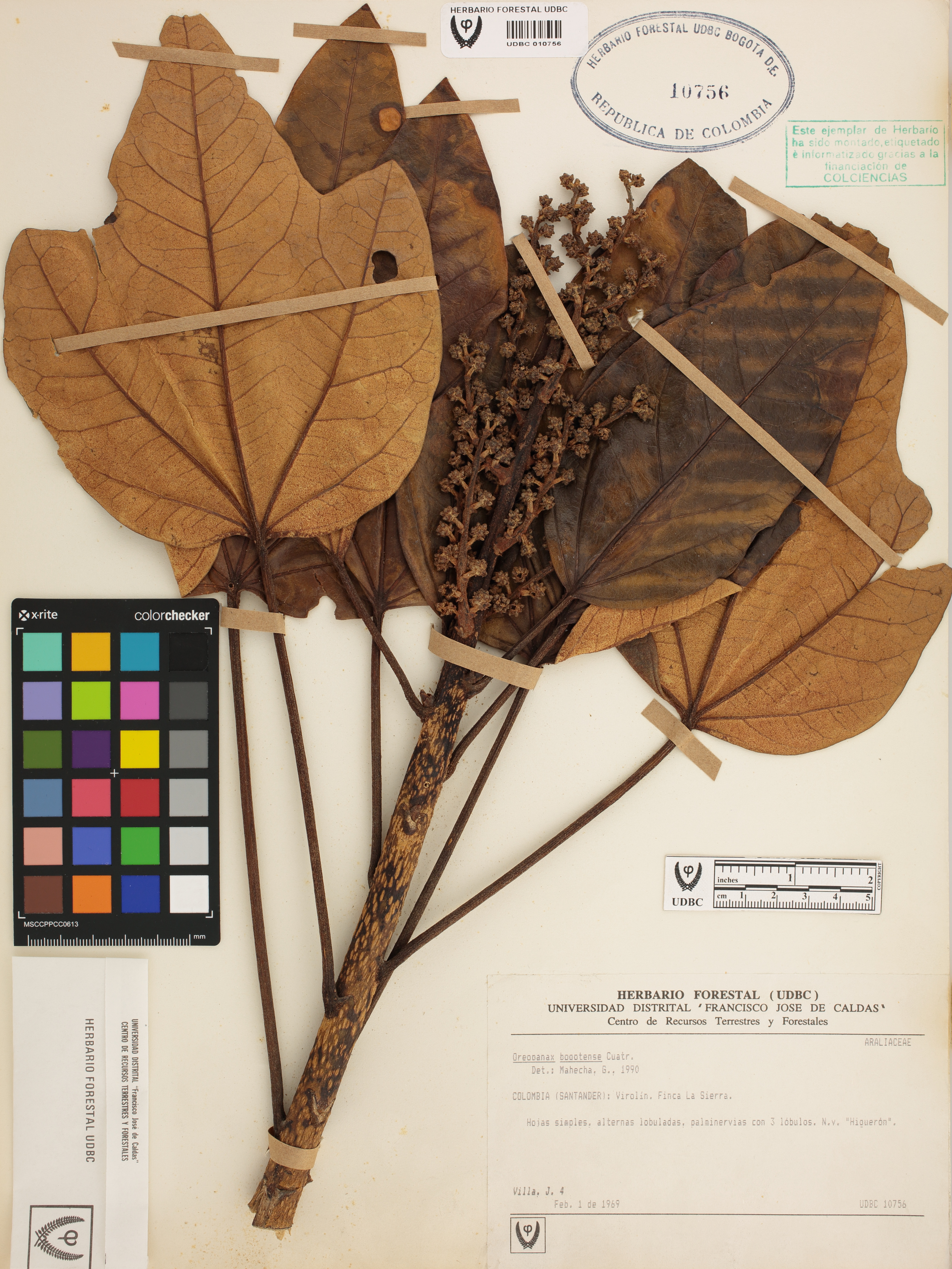 | dc.description | Fotografía del ejemplar Villa, J. 4, determinado como Oreopanax bogotensis en el año 1990 | |