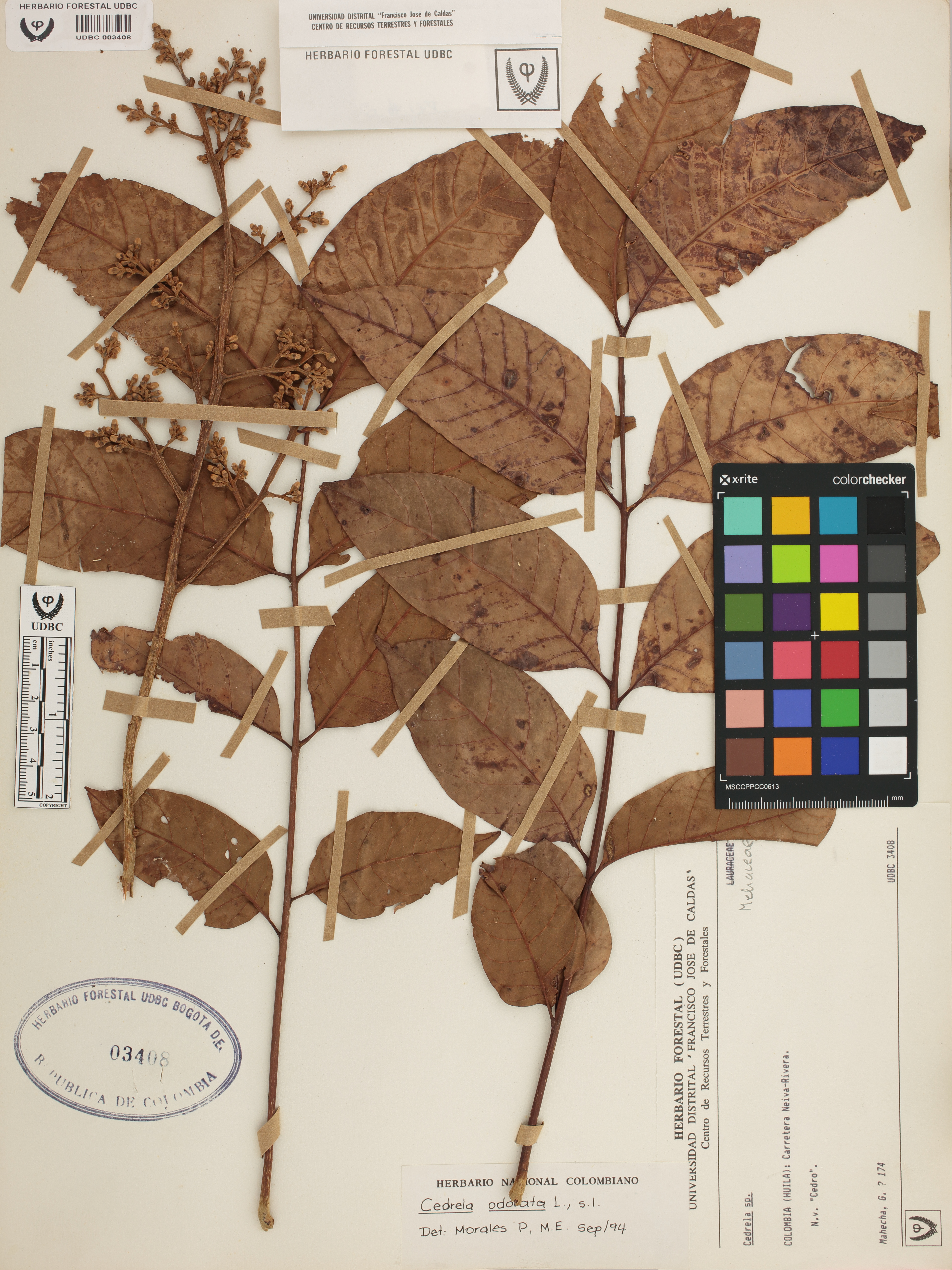 Fotografía del ejemplar Mahecha, G. 174, determinado como Cedrela odorata en el año 1994