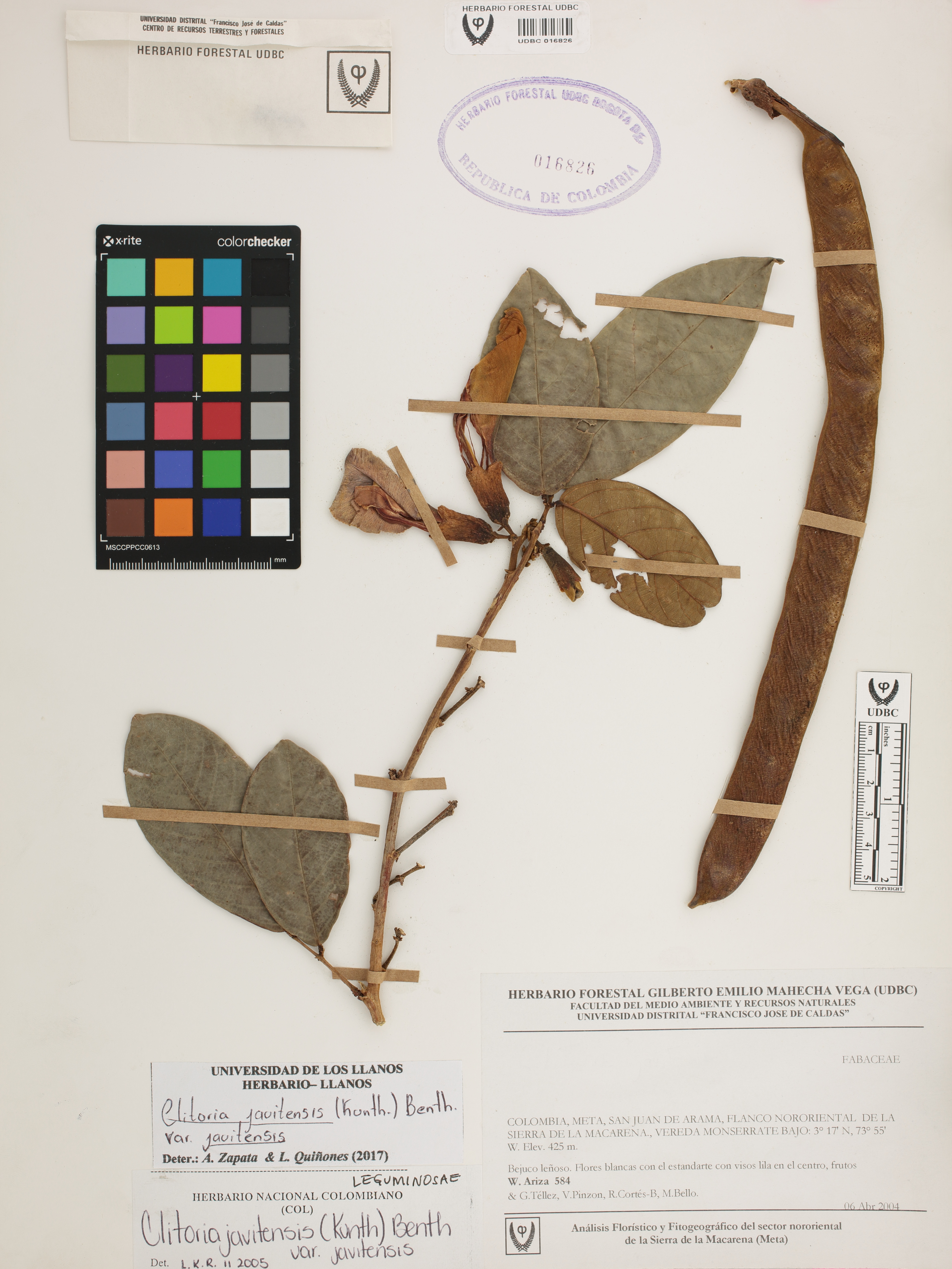 Fotografía del ejemplar Ariza, W. 584, determinado como Clitoria javitensis var. javitensis en el año 2005