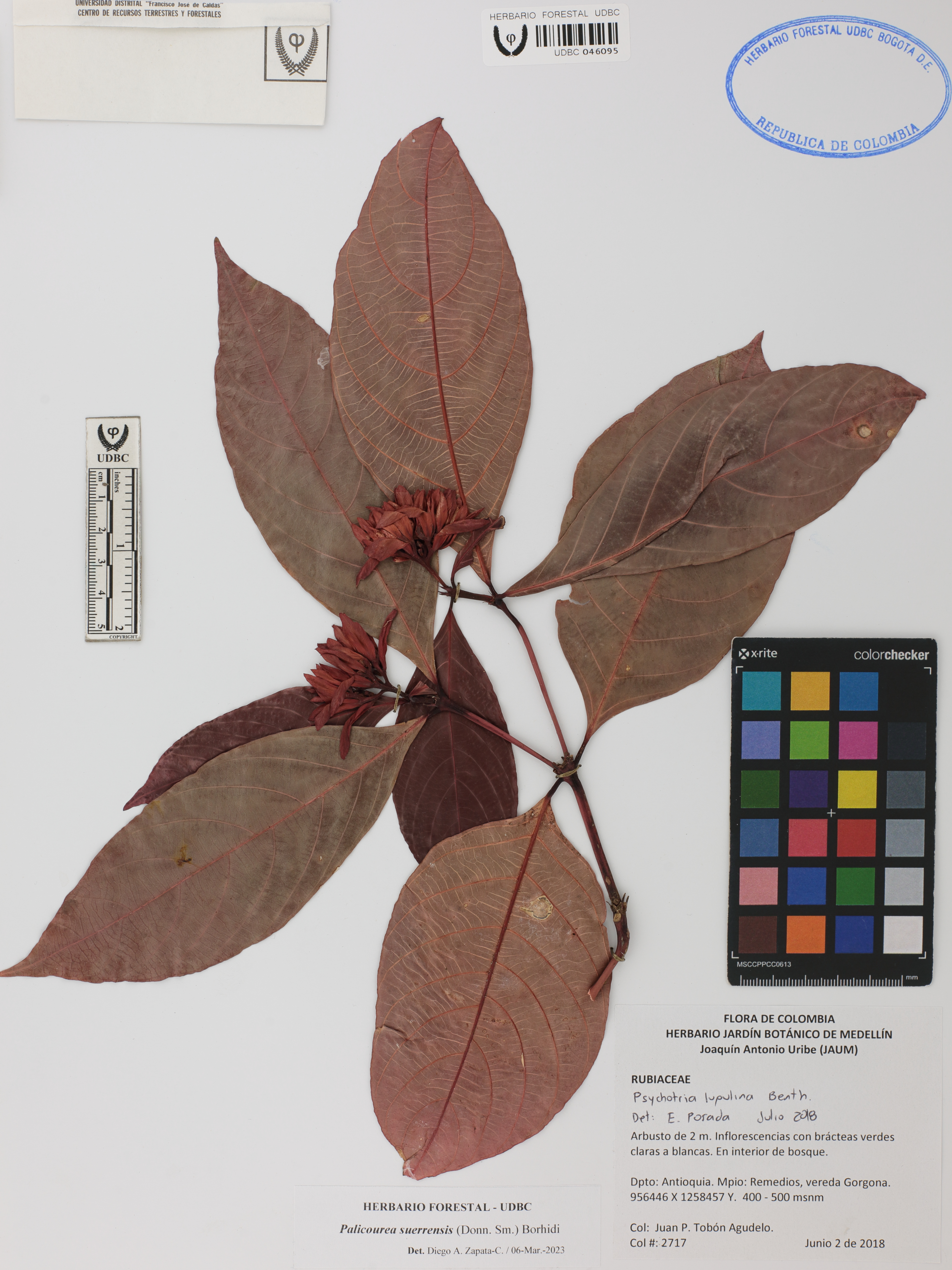 | dc.description | Fotografía del ejemplar Tobón-Agudelo, J. 2717, determinado como Palicourea suerrensis en el año 2023 | |