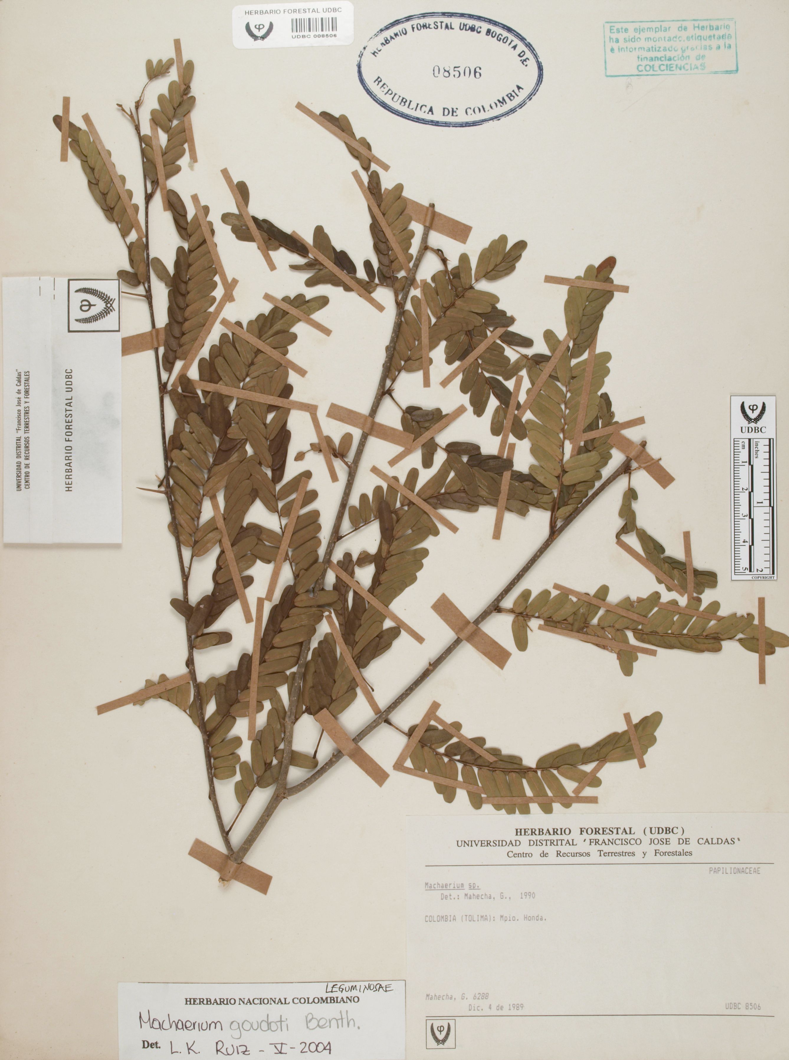 | dc.description | Fotografía del ejemplar Mahecha, G. 6288, determinado como Machaerium goudotii en el año 2004 | |
