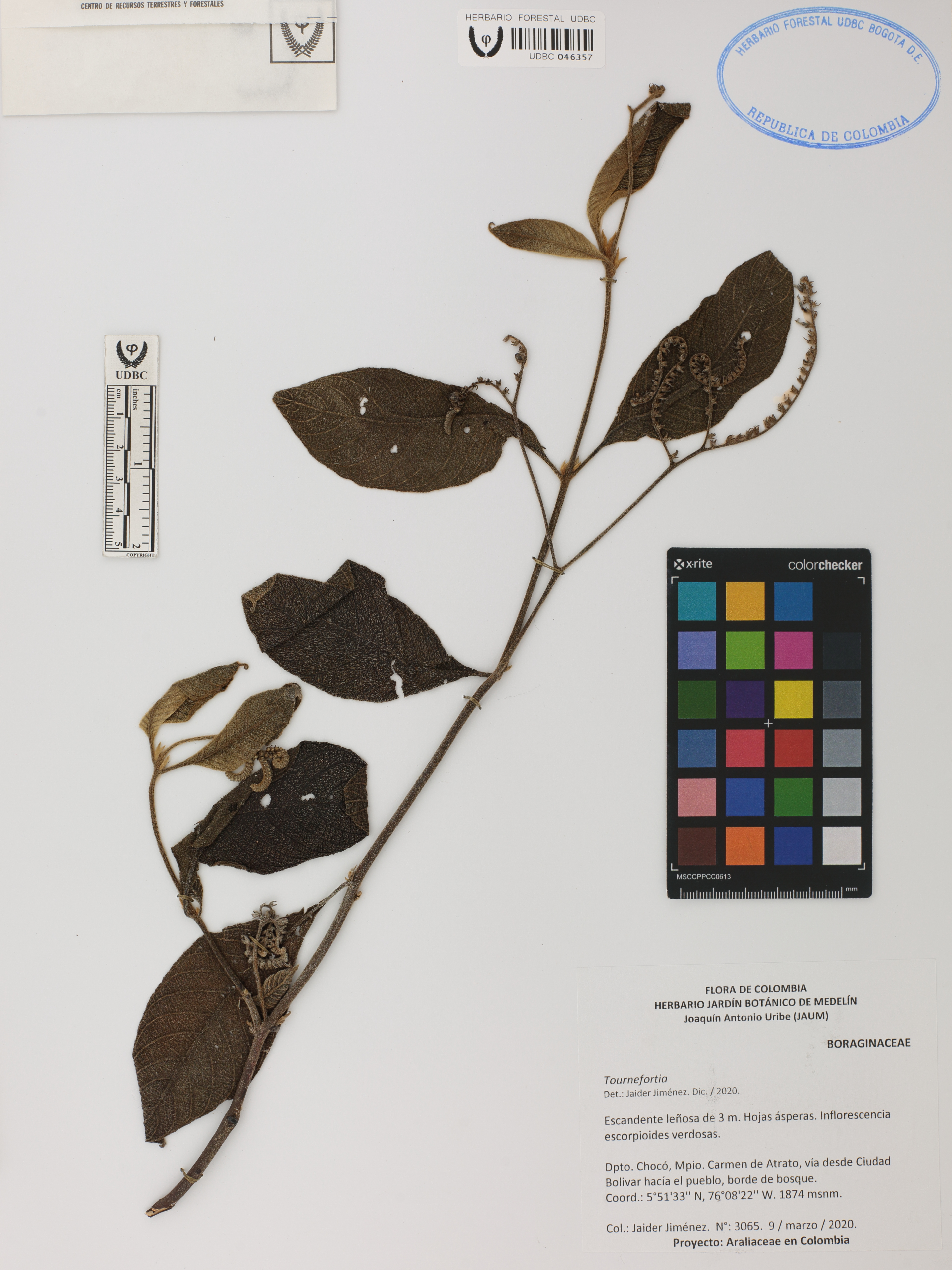 Fotografía del ejemplar Jiménez, J. 3065, determinado como Tournefortia sp. en el año 2020