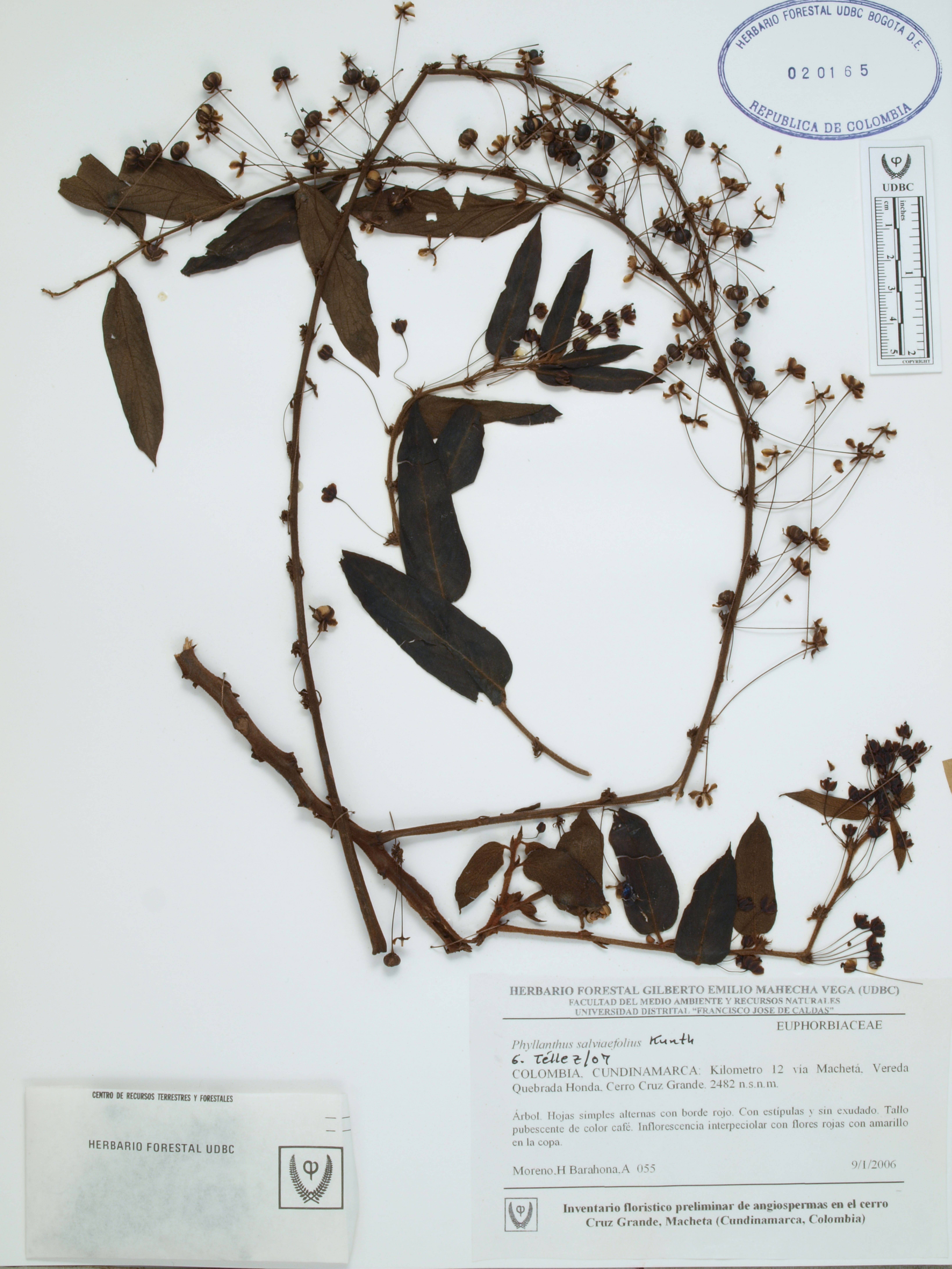 Fotografía del ejemplar Moreno, H. 55, determinado como Phyllanthus salviifolius en el año 2007