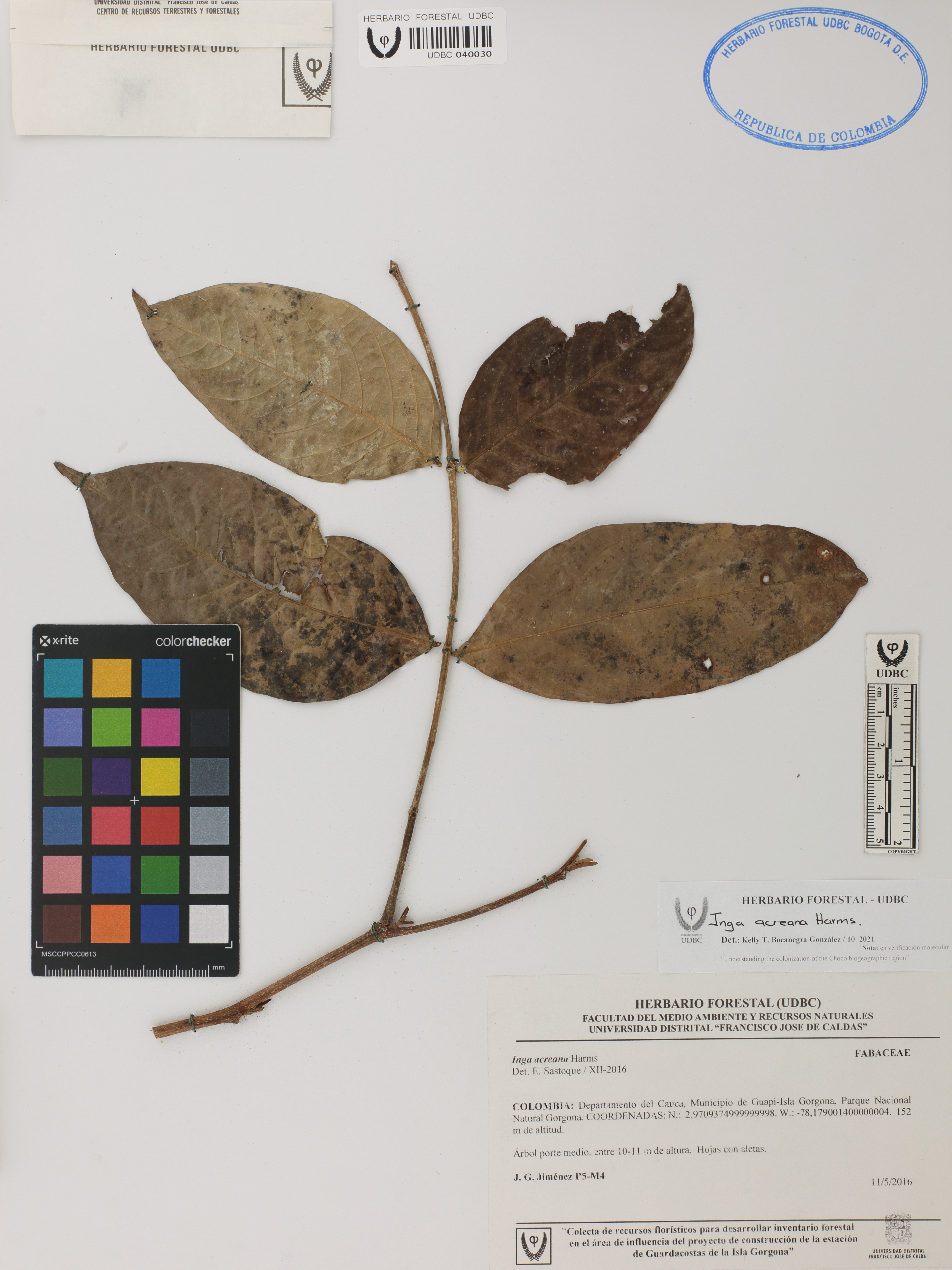 Fotografía del ejemplar Jiménez, J., determinado como Inga acreana en el año 2016