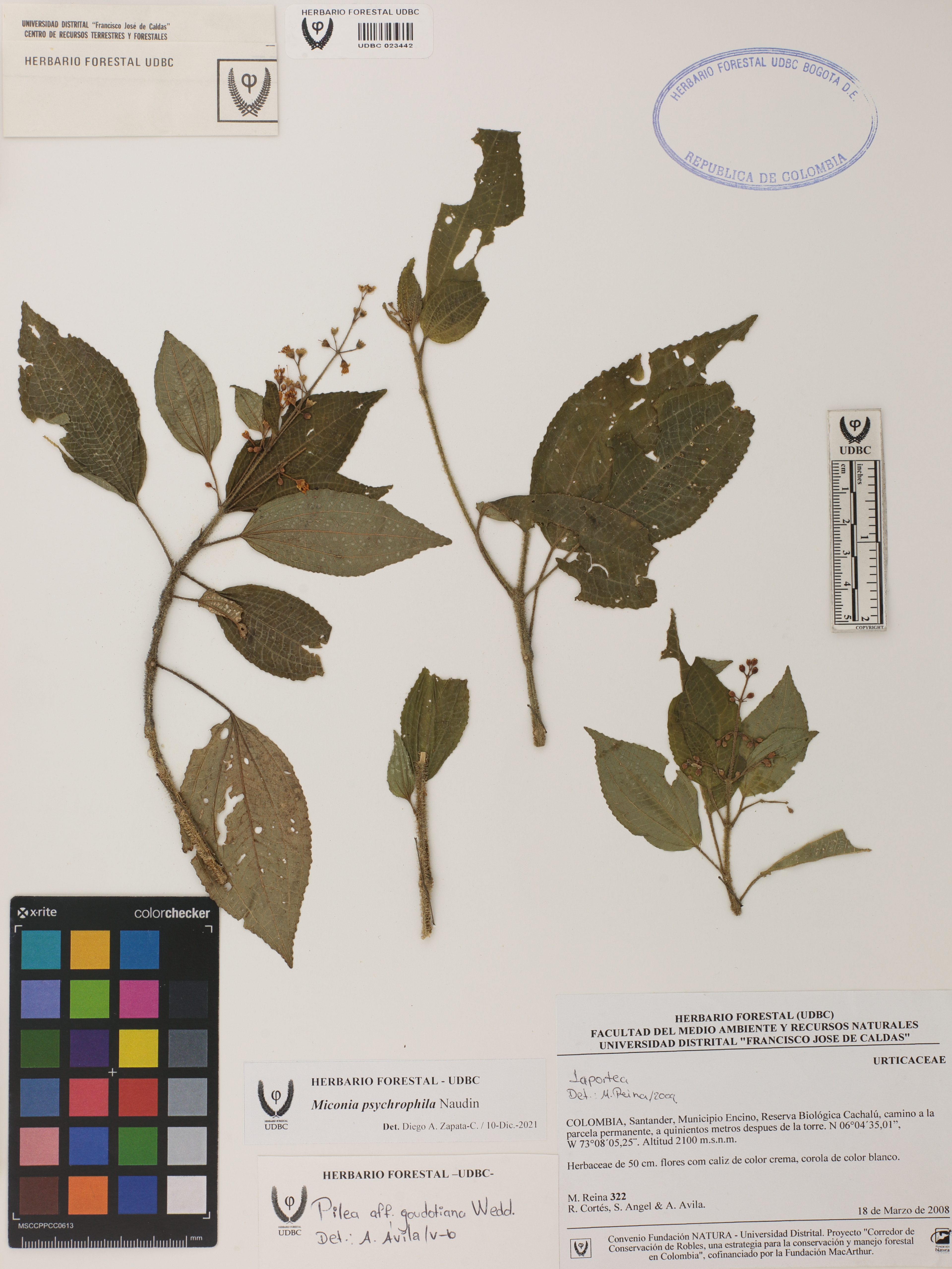 | dc.description | Fotografía del ejemplar Reina, M. 322, determinado como Miconia psychrophila en el año 2021 | |