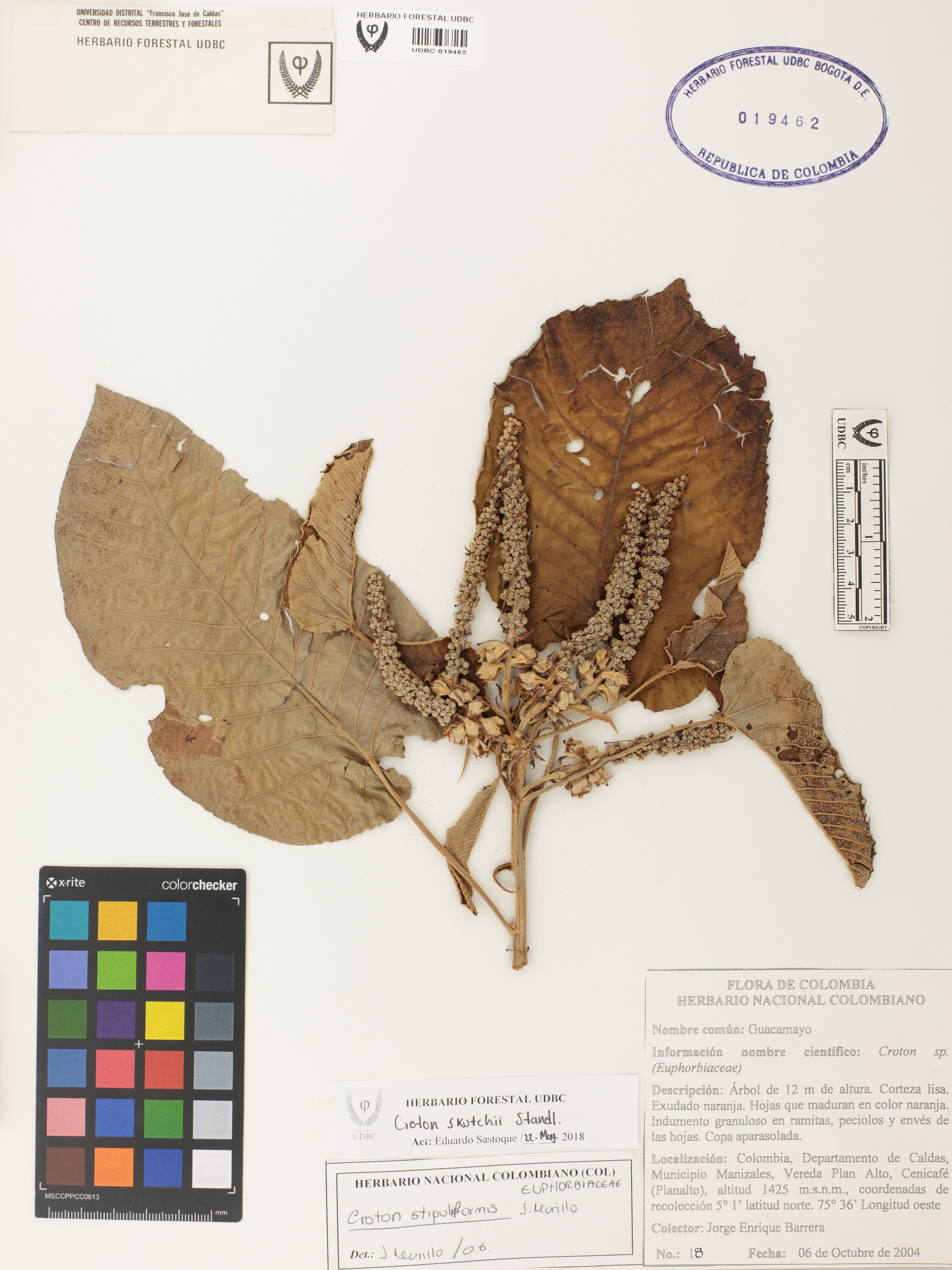 Fotografía del ejemplar Becerra, J. 18, determinado como Croton skutchii en el año 2006
