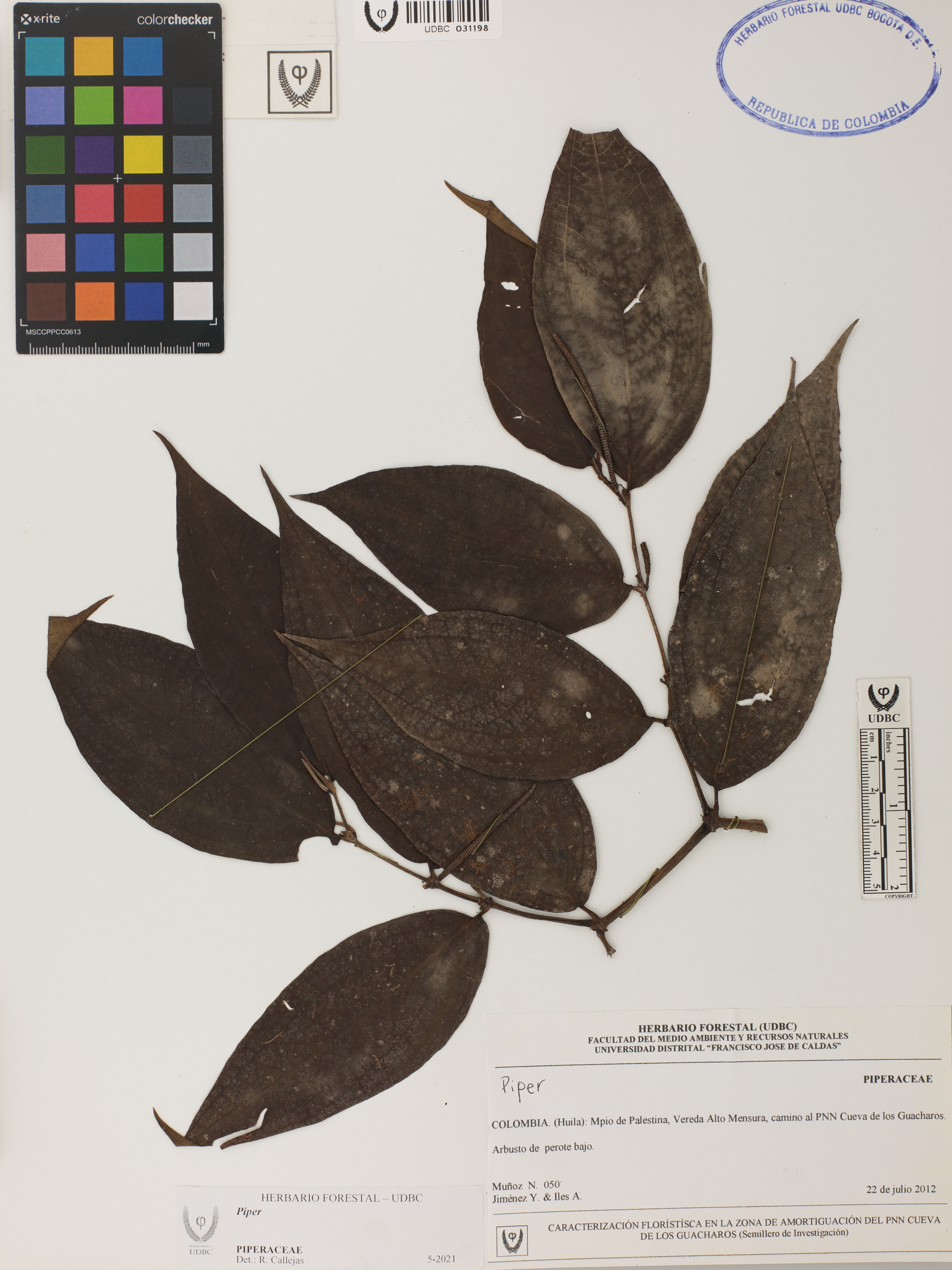Fotografía del ejemplar Muñoz, N. 50, determinado como Piper sp.
