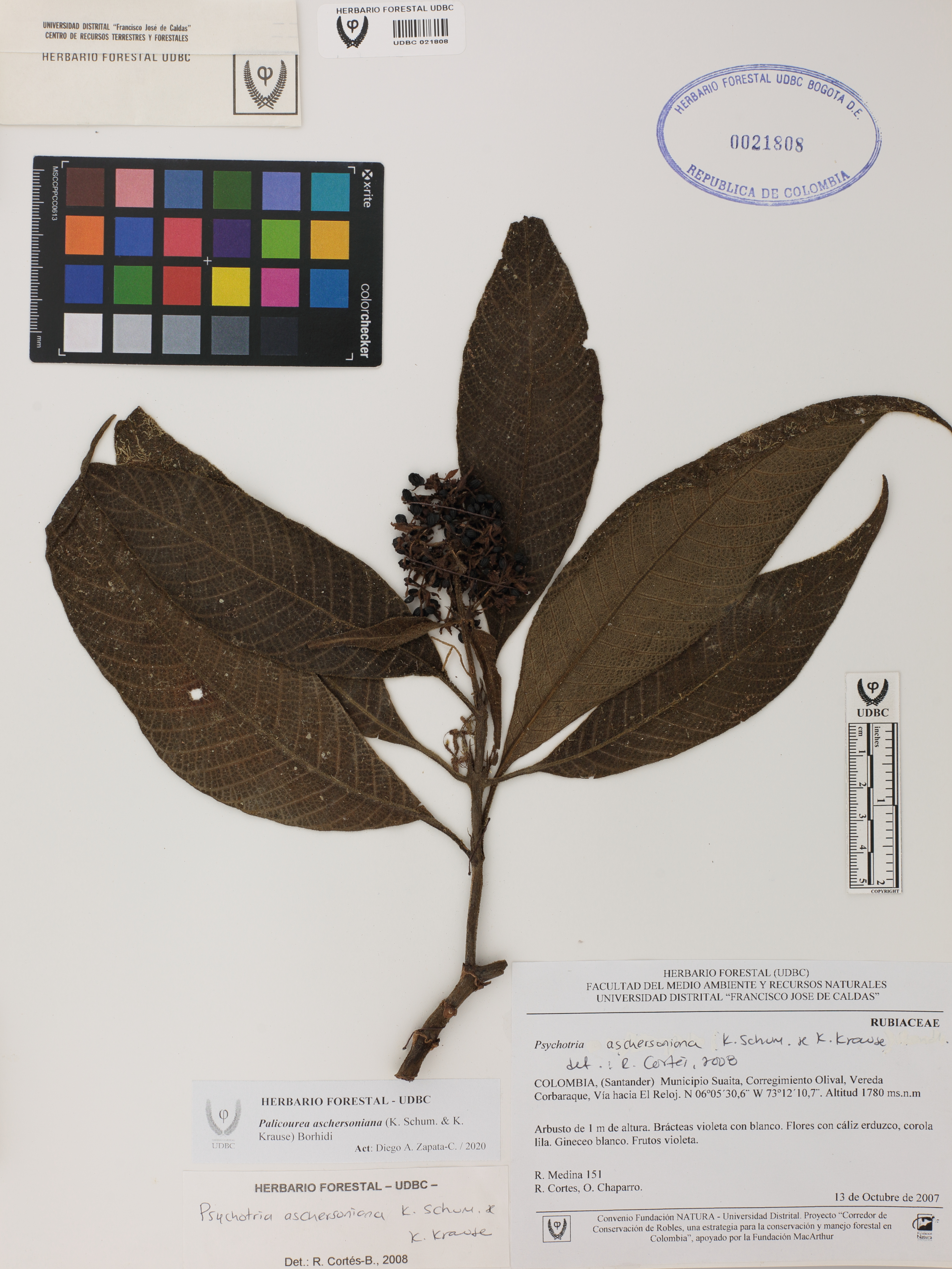 | dc.description | Fotografía del ejemplar Medina, R. 151, determinado como Palicourea aschersoniana en el año 2008 | |