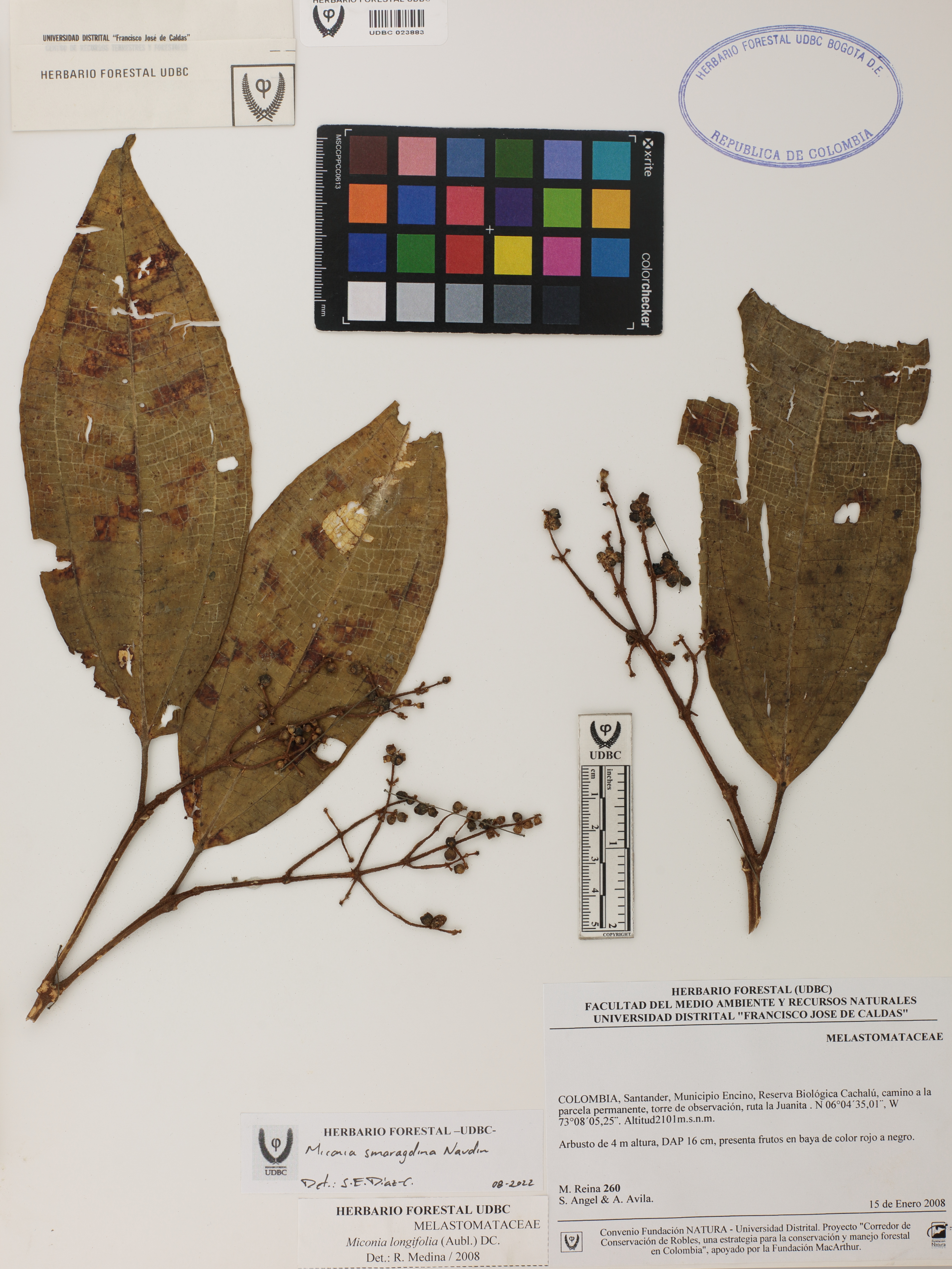 Fotografía del ejemplar Reina, M. 260, determinado como Miconia smaragdina en el año 2022