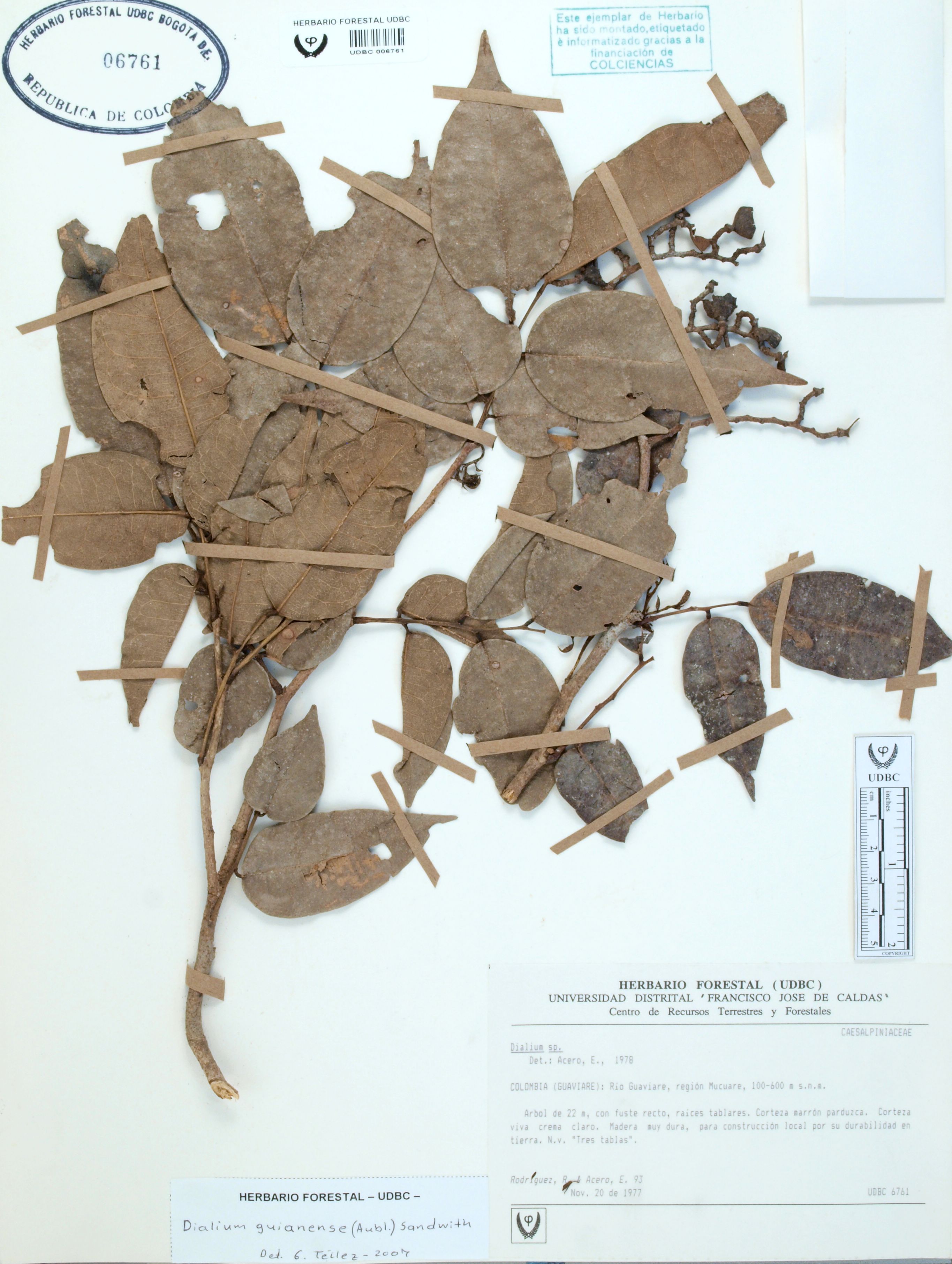 Fotografía del ejemplar Rodríguez, R. 93, determinado como Dialium guianense en el año 2007