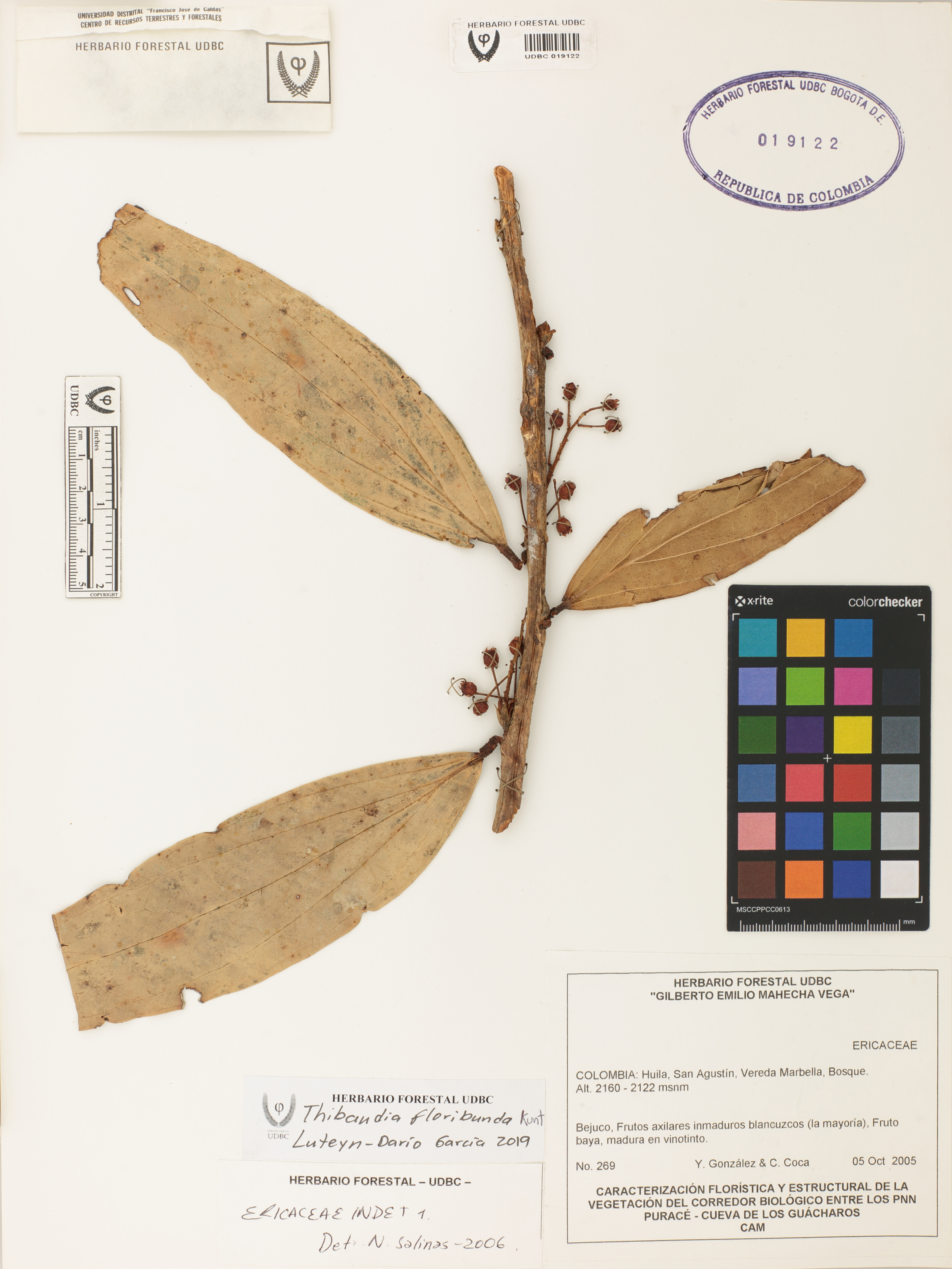 Fotografía del ejemplar González, Y. 269, determinado como Thibaudia floribunda en el año 2019